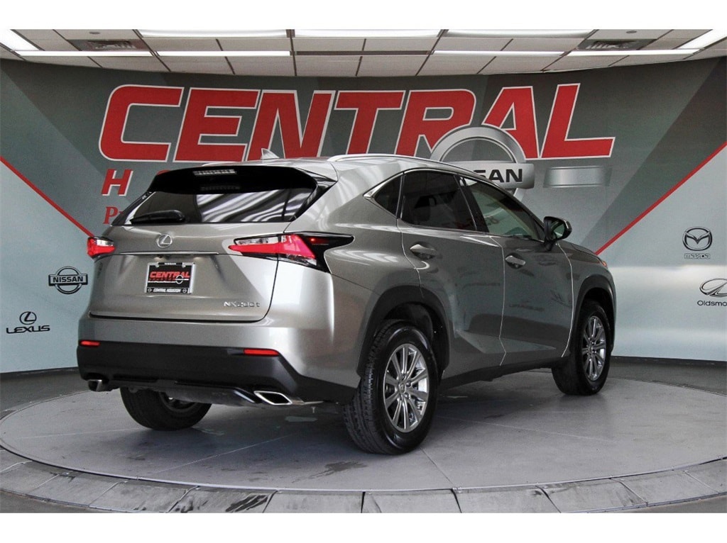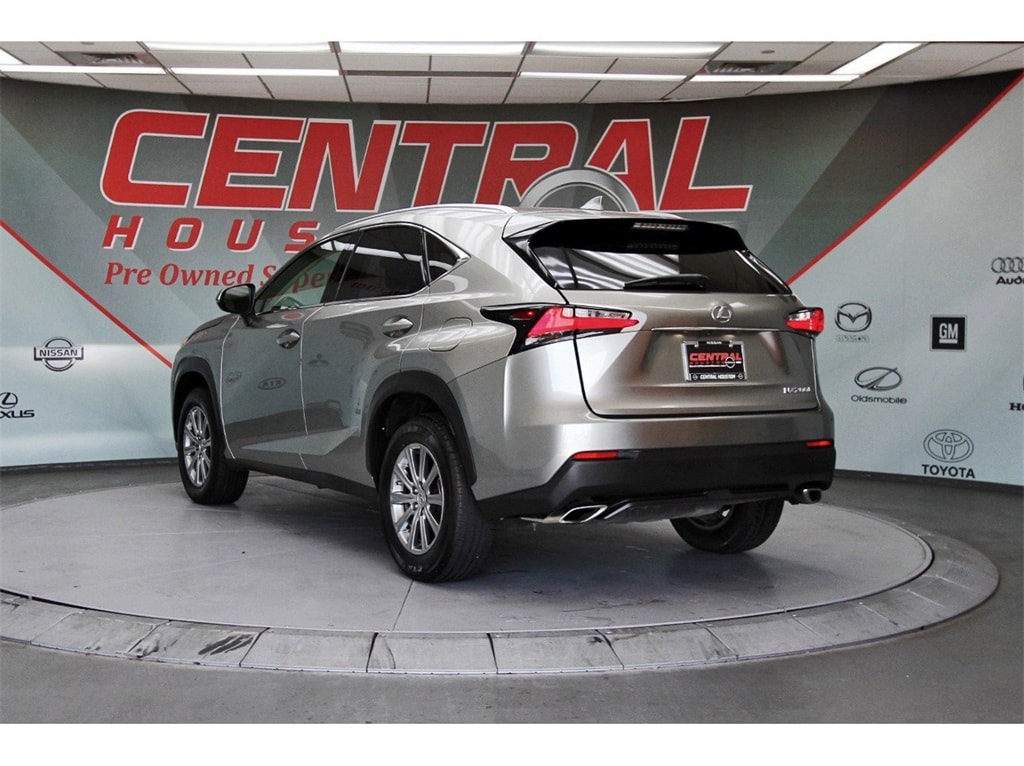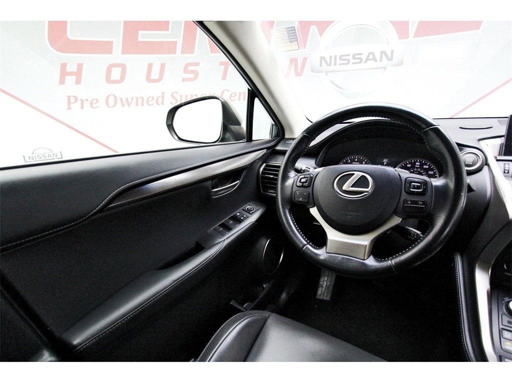 Central Houston Nissan is proud to present you with another True Market Priced Pre-Owned Vehicle. This 2015 Lexus NX 200t is loaded with the following Factory Options: 3.888 Axle Ratio, 4-Wheel Disc Brakes, 8 Speakers, ABS brakes, Air Conditioning, Alloy wheels, AM/FM radio: SiriusXM, Auto-dimming Rear-View mirror, Automatic temperature control, Brake assist, Bumpers: body-color, CD player, Driver door bin, Driver vanity mirror, Dual front impact airbags, Dual front side impact airbags, Electronic Stability Control, Emergency communication system: Lexus Enform w/Safety Connect, Exterior Parking Camera Rear, Four wheel independent suspension, Front anti-roll bar, Front Bucket Seats, Front Center Armrest, Front dual zone A/C, Front fog lights, Front reading lights, Fully automatic headlights, Heated door mirrors, Illuminated entry, Knee airbag, Leather Shift Knob, Leather steering wheel, Low tire pressure warning, Occupant sensing airbag, Outside temperature display, Overhead airbag, Overhead console, Panic alarm, Passenger door bin, Passenger vanity mirror, Power Back Door, Power door mirrors, Power driver seat, Power passenger seat, Power steering, Power windows, Radio data system, Radio: AM/FM/CD Lexus Display Audio, Rear anti-roll bar, Rear reading lights, Rear seat center armrest, Rear window defroster, Rear window wiper, Remote keyless entry, Roof rack: rails only, Security system, Speed control, Speed-sensing steering, Split folding rear seat, Spoiler, Steering wheel mounted audio controls, Synthetic Leather Seat Trim, Tachometer, Telescoping steering wheel, Tilt steering wheel, Traction control, Trip computer, Turn signal indicator mirrors, Variably intermittent wipers, Wheels: 17" x 7.0J 10-Spoke Aluminum, and Wheels: 18" x 7.5J!!