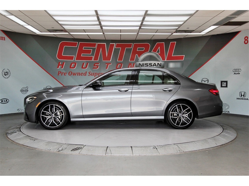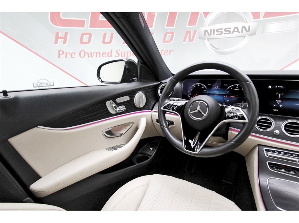 Central Houston Nissan is proud to present you with another True Market Priced Pre-Owned Vehicle. This 2022 Mercedes-Benz E-Class E 350 is loaded with the following Factory Options: AMG® Line Exterior (Perforated Front Brake Discs & Fr Brake Calipers), Night Package, 4-Wheel Disc Brakes, 8 Speakers, ABS brakes, Adaptive Highbeam Assist, Air Conditioning, Alloy wheels, AM/FM radio: SiriusXM, Android Auto®, Anti-whiplash front head restraints, Apple CarPlay®, Apple CarPlay®/Android Auto®, Auto High-beam Headlights, Auto tilt-away steering wheel, Auto-dimming door mirrors, Auto-dimming Rear-View mirror, Automatic temperature control, Black Headliner, Brake assist, Bumpers: body-color, Burmester® Surround Sound System, Center Console in Natural Grain Black Ash Wood, Delay-off headlights, Driver door bin, Driver vanity mirror, Dual front impact airbags, Dual front side impact airbags, Electronic Stability Control, Emergency communication system: Mercedes me connect, Extended Mobility Tires, Exterior Parking Camera Rear, Four wheel independent suspension, Front anti-roll bar, Front Bucket Seats, Front Center Armrest, Front dual zone A/C, Front reading lights, Fully automatic headlights, Garage door transmitter: HomeLink, Genuine wood console insert, Genuine wood dashboard insert, Genuine wood door panel insert, Head restraints memory, Heated door mirrors, Heated Front Seats, Heated front seats, Illuminated entry, Knee airbag, Leather Shift Knob, LED Logo Projectors (Set of 2), Low tire pressure warning, MB-Tex Upholstery, Memory seat, Navigation system: MBUX, Occupant sensing airbag, Outside temperature display, Overhead airbag, Overhead console, Panic alarm, Panorama Sunroof, PARKTRONIC w/Active Parking Assist, Passenger door bin, Passenger vanity mirror, Power adjustable front head restraints, Power adjustable rear head restraints, Power door mirrors, Power driver seat, Power moonroof, Power passenger seat, Power steering, Power windows, Radio data system, Radio: MBUX Infotainment System w/Navigation, Rain sensing wipers, Rear anti-roll bar, Rear Deck Spoiler in Body Color, Rear fog lights, Rear reading lights, Rear seat center armrest, Rear window defroster, Remote keyless entry, Security system, SiriusXM Radio, Smartphone Integration, Speed control, Speed-sensing steering, Split folding rear seat, Steering wheel memory, Steering wheel mounted audio controls, Surround View System, Tachometer, Telescoping steering wheel, Tilt steering wheel, Traction control, Trip computer, Turn signal indicator mirrors, Variably intermittent wipers, Weather band radio, Wheels: 18" x 8.0" Twin 5-Spoke, Wheels: 19" x 8.0" AMG® Twin 5-Spoke w/Black Accents, and Wireless Charging w/NFC Pairing!!