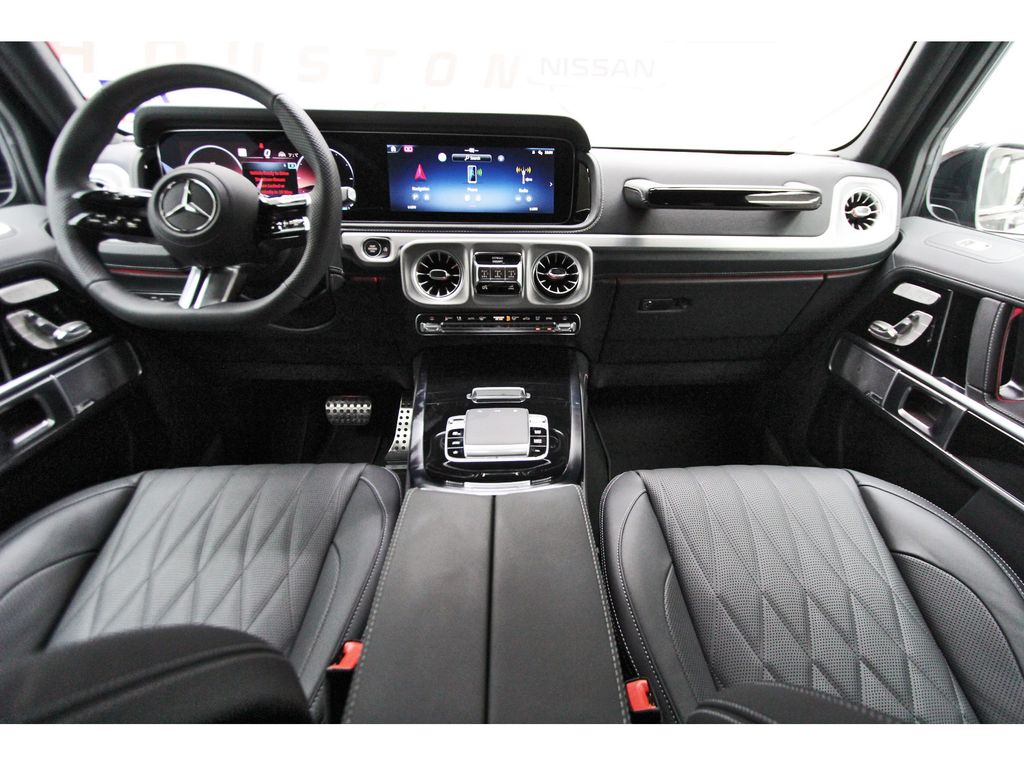 Central Houston Nissan is proud to present you with another True Market Priced Pre-Owned Vehicle. This 2025 Mercedes-Benz G-Class G 550 4MATIC® is loaded with the following Factory Options: 18 Speakers, 4-Wheel Disc Brakes, ABS brakes, Adaptive suspension, Air Conditioning, Alloy wheels, AM/FM radio: SiriusXM, Apple CarPlay®/Android Auto®, Auto High-beam Headlights, Auto tilt-away steering wheel, Auto-dimming door mirrors, Auto-dimming Rear-View mirror, Automatic temperature control, Bodyside moldings, Brake assist, Bumpers: body-color, Child-Seat-Sensing Airbag, Compass, Delay-off headlights, Driver door bin, Driver vanity mirror, Dual front impact airbags, Dual front side impact airbags, Electronic Stability Control, Emergency communication system: Mercedes-Benz Emergency Call Service, Exterior Parking Camera Rear, Front anti-roll bar, Front Bucket Seats, Front Center Armrest, Front dual zone A/C, Front reading lights, Front wheel independent suspension, Garage door transmitter: HomeLink, Genuine wood console insert, Genuine wood dashboard insert, Genuine wood door panel insert, Head restraints memory, Headlight cleaning, Heated door mirrors, Heated front seats, Heated rear seats, Heated steering wheel, Illuminated entry, Knee airbag, Leather steering wheel, Leather Upholstery, Low tire pressure warning, Memory seat, Navigation system: MBUX, Occupant sensing airbag, Outside temperature display, Overhead airbag, Overhead console, Panic alarm, Passenger door bin, Passenger vanity mirror, Power adjustable front head restraints, Power door mirrors, Power driver seat, Power Heated Front Seats, Power moonroof, Power passenger seat, Power steering, Power windows, Radio data system, Radio: Burmester® 3D Surround Sound System, Rain sensing wipers, Rear air conditioning, Rear anti-roll bar, Rear fog lights, Rear reading lights, Rear seat center armrest, Rear side impact airbag, Rear window defroster, Rear window wiper, Remote keyless entry, Security system, Speed control, Speed-sensing steering, Split folding rear seat, Steering wheel memory, Steering wheel mounted audio controls, Tachometer, Telescoping steering wheel, Tilt steering wheel, Traction control, Trip computer, Turn signal indicator mirrors, Variably intermittent wipers, and Wheels: 19" 8-Spoke Tremolite Grey Light-Alloy!!