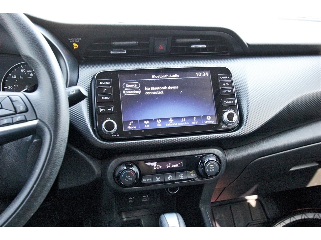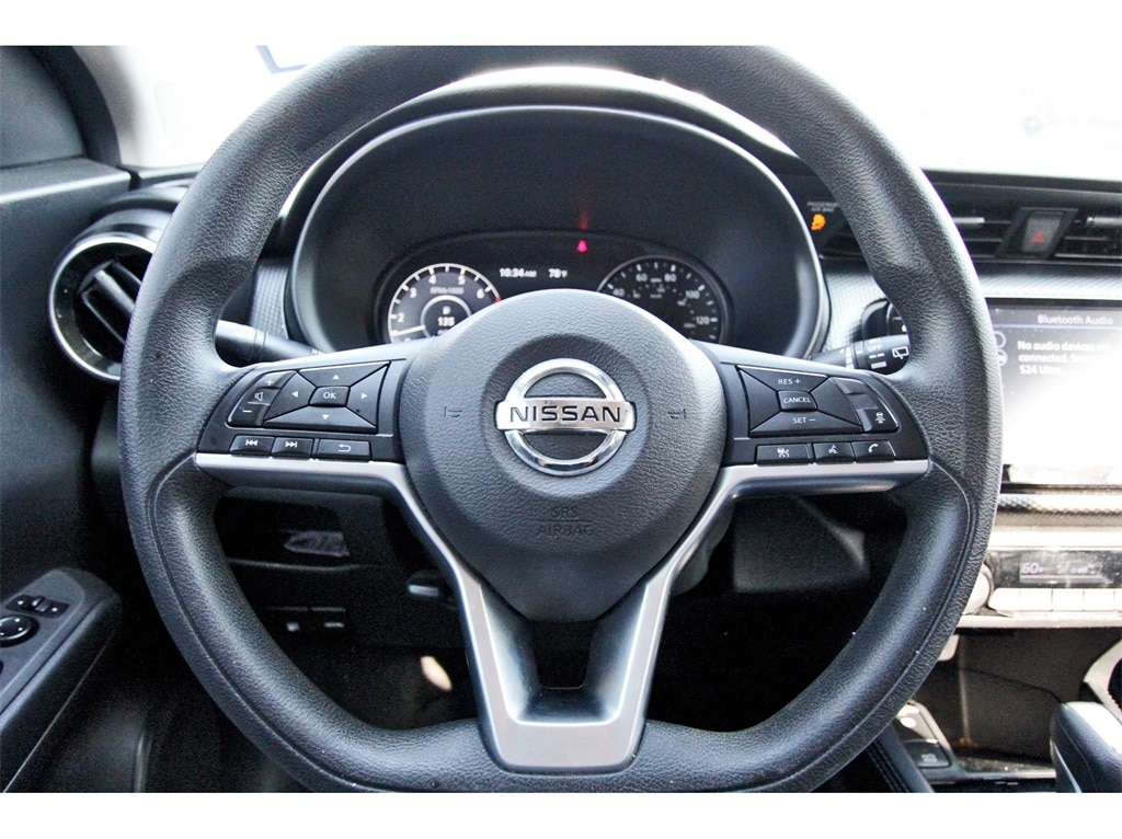 Central Houston Nissan is proud to present you with another True Market Priced Pre-Owned Vehicle. This 2021 Nissan Kicks SV is loaded with the following Factory Options: 3.927 Axle Ratio, 4-Wheel Disc Brakes, 6 Speakers, ABS brakes, Air Conditioning, Alloy wheels, AM/FM radio: SiriusXM, Apple CarPlay/Android Auto, Auto High-beam Headlights, Automatic temperature control, Blind Spot Warning, Brake assist, Bumpers: body-color, Carpeted Floor Mats w/Cargo Mat, Cloth Seat Trim, Compass, Driver door bin, Driver vanity mirror, Dual front impact airbags, Dual front side impact airbags, Electronic Stability Control, Front anti-roll bar, Front Bucket Seats, Front Center Armrest, Front reading lights, Front wheel independent suspension, Fully automatic headlights, Heated door mirrors, Illuminated entry, Knee airbag, Low tire pressure warning, Occupant sensing airbag, Outside temperature display, Overhead airbag, Panic alarm, Passenger door bin, Passenger vanity mirror, Power door mirrors, Power steering, Power windows, Radio data system, Radio: AM/FM Audio System, Rear Parking Sensors, Rear reading lights, Rear side impact airbag, Rear window defroster, Rear window wiper, Remote keyless entry, Roof rack: rails only, Speed control, Split folding rear seat, Sport steering wheel, Steering wheel mounted audio controls, Tachometer, Telescoping steering wheel, Tilt steering wheel, Traction control, Trip computer, Variably intermittent wipers, and Wheels: 17" 5-Hole Alloy!!
