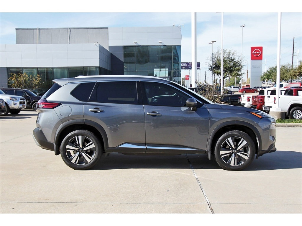 Central Houston Nissan is proud to present you with another True Market Priced Pre-Owned Vehicle. This 2021 Nissan Rogue SL is loaded with the following Factory Options: Premium Package (Bose Premium Audio System, Front & Rear Sonar, Nissan Door To Door Navigation, ProPILOT Assist +, and SiriusXM Traffic), 19" Aluminum Alloy Wheels, 4-Wheel Disc Brakes, 5.604 Axle Ratio, 6 Speakers, ABS brakes, Air Conditioning, Alloy wheels, AM/FM Radio, AM/FM radio, Auto High-beam Headlights, Auto-dimming Rear-View mirror, Automatic temperature control, Black Splash Guards (Set of 4), Brake assist, Bumpers: body-color, Chrome Rear Bumper Protector, Delay-off headlights, Driver door bin, Driver vanity mirror, Dual front impact airbags, Dual front side impact airbags, Electronic Stability Control, Emergency communication system: NissanConnect Services, Exterior Parking Camera Rear, First Aid Kit, Floor Mats w/2-Piece Cargo Area Protector, Four wheel independent suspension, Front anti-roll bar, Front Bucket Seats, Front Center Armrest, Front dual zone A/C, Front fog lights, Front reading lights, Fully automatic headlights, Heated door mirrors, Heated Front Bucket Seats, Heated front seats, Heated steering wheel, Illuminated entry, Knee airbag, Leather steering wheel, Leather-Appointed Seat Trim, Low tire pressure warning, Memory seat, NissanConnect featuring Apple CarPlay and Android Auto, Occupant sensing airbag, Outside temperature display, Overhead airbag, Overhead console, Panic alarm, Passenger door bin, Passenger vanity mirror, Power door mirrors, Power driver seat, Power Liftgate, Power moonroof, Power passenger seat, Power steering, Power windows, Radio data system, Rear air conditioning, Rear anti-roll bar, Rear Parking Sensors, Rear seat center armrest, Rear side impact airbag, Rear window defroster, Rear window wiper, Remote keyless entry, Roof rack: rails only, Security system, Speed control, Speed-Sensitive Wipers, Split folding rear seat, Spoiler, Steering wheel mounted audio controls, Tachometer, Telescoping steering wheel, Tilt steering wheel, Traction control, Trip computer, Turn signal indicator mirrors, and Variably intermittent wipers!!
