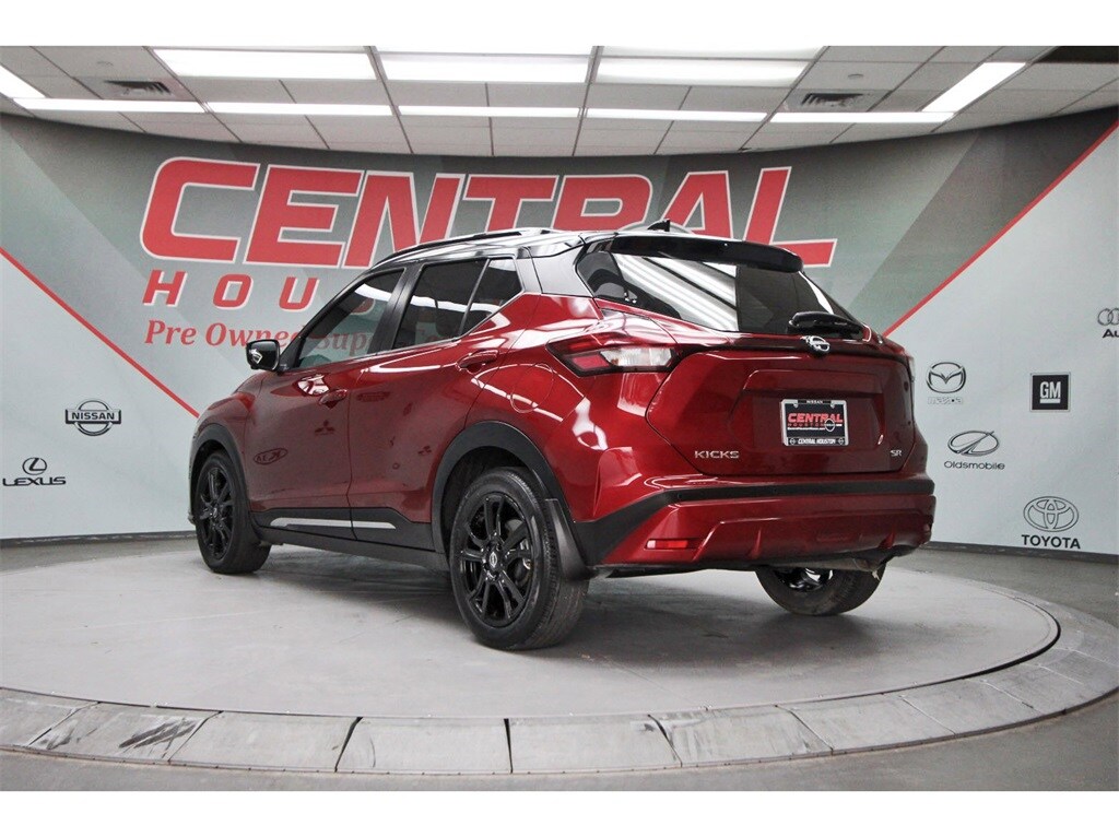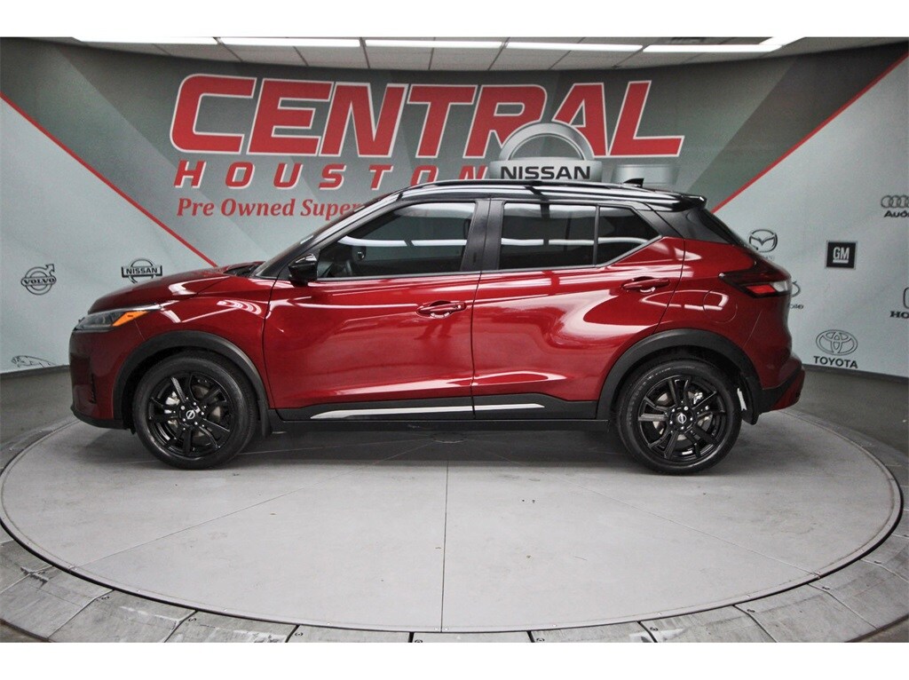 Central Houston Nissan is proud to present you with another True Market Priced Pre-Owned Vehicle. This 2023 Nissan Kicks SR Nissan Certified is loaded with the following Factory Options: Nissan Certified Certified SR Premium Package (Bose Personal Plus Audio System, Heated Front Seats, Heated Steering Wheel, Prima-Tex Appointed Seat Trim, Security System, and Tonneau Cover), Technology Package (NissanConnect Services), Nissan Certified Certified, 17" Alloy Wheels, 3.93 Axle Ratio, 4-Wheel Disc Brakes, 6 Speakers, ABS brakes, Air Conditioning, Alloy wheels, AM/FM radio: SiriusXM, Apple CarPlay/Android Auto, Auto High-beam Headlights, Automatic temperature control, Blind Spot Warning, Brake assist, Bumpers: body-color, Carpeted Floor Mats w/Cargo Mat, Cloth Seat Trim, Delay-off headlights, Driver door bin, Driver vanity mirror, Dual front impact airbags, Dual front side impact airbags, Electronic Stability Control, Exterior Parking Camera Rear, Front anti-roll bar, Front Bucket Seats, Front Center Armrest, Front fog lights, Front reading lights, Front wheel independent suspension, Fully automatic headlights, Heated door mirrors, Illuminated entry, Knee airbag, Low tire pressure warning, Occupant sensing airbag, Outside temperature display, Overhead airbag, Panic alarm, Passenger door bin, Passenger vanity mirror, Power door mirrors, Power steering, Power windows, Radio data system, Radio: AM/FM Audio System, Rear Parking Sensors, Rear reading lights, Rear Roof Spoiler Credit, Rear side impact airbag, Rear window defroster, Rear window wiper, Remote keyless entry, Speed control, Splash Guards Grain (4 Piece), Split folding rear seat, Sport steering wheel, Steering wheel mounted audio controls, Tachometer, Telescoping steering wheel, Tilt steering wheel, Traction control, Trip computer, Turn signal indicator mirrors, Variably intermittent wipers, and Wheels: 17" Black Alloy!!