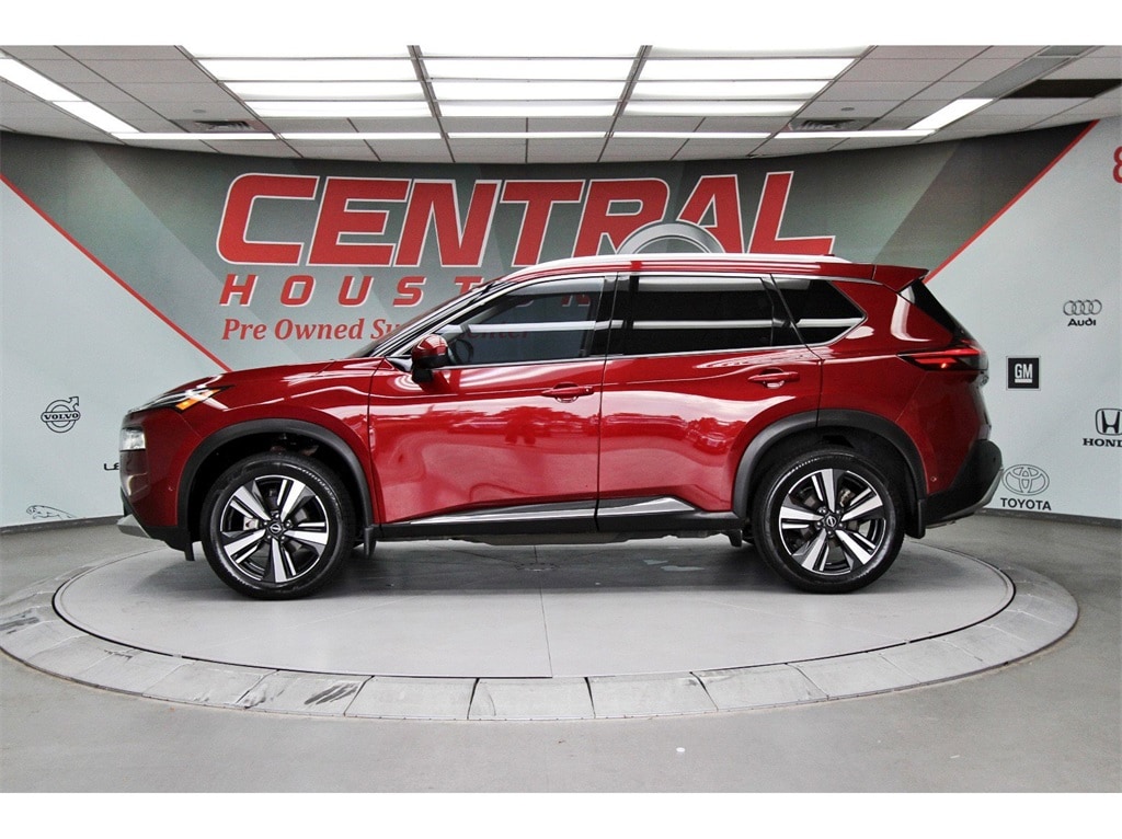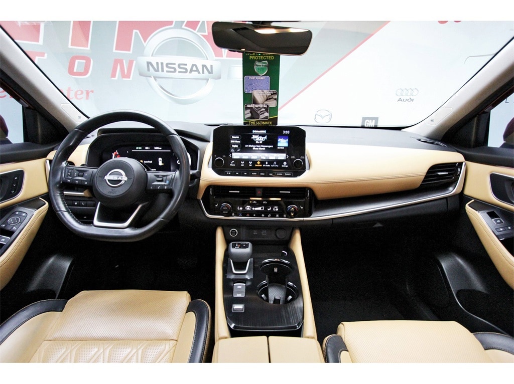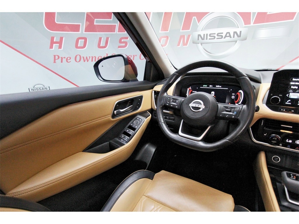 Central Houston Nissan is proud to present you with another True Market Priced Pre-Owned Vehicle. This 2023 Nissan Rogue Platinum is loaded with the following Factory Options: Platinum Premium Package (Heads-Up Display, Rear Heated Seats, and Tri-Zone HVAC), 10 Speakers, 19" Aluminum Alloy Wheels, 4-Wheel Disc Brakes, 5.604 Axle Ratio, ABS brakes, Air Conditioning, Alloy wheels, AM/FM radio: SiriusXM, Auto High-beam Headlights, Auto-dimming Rear-View mirror, Automatic temperature control, Black Splash Guards (Set of 4), Bose Premium Audio System, Brake assist, Bumpers: body-color, Chrome Rear Bumper Protector, Delay-off headlights, Driver door bin, Driver vanity mirror, Dual front impact airbags, Dual front side impact airbags, Electronic Stability Control, Emergency communication system: NissanConnect Services, External Ground Lighting, First Aid Kit, Floor Mats w/2-Piece Cargo Area Protector, Four wheel independent suspension, Frameless Rearview Mirror w/Universal Remote, Front anti-roll bar, Front Bucket Seats, Front Center Armrest, Front dual zone A/C, Front reading lights, Fully automatic headlights, Heated door mirrors, Heated Front Bucket Seats, Heated front seats, Heated steering wheel, Illuminated entry, Illuminated Kick Plates, Knee airbag, Leather steering wheel, Low tire pressure warning, Memory seat, Navigation system: NissanConnect Navigation, NissanConnect featuring Apple CarPlay and Android Auto, Occupant sensing airbag, Outside temperature display, Overhead airbag, Overhead console, Panic alarm, Passenger door bin, Passenger vanity mirror, Power door mirrors, Power driver seat, Power Liftgate, Power moonroof, Power passenger seat, Power steering, Power windows, Quilted Semi-Aniline Leather Seat Trim, Radio data system, Radio: AM/FM NissanConnect w/Navigation, Rear anti-roll bar, Rear reading lights, Rear seat center armrest, Rear side impact airbag, Rear window defroster, Rear window wiper, Remote keyless entry, Retractable Cargo Cover, Security system, Speed control, Speed-Sensitive Wipers, Split folding rear seat, Spoiler, Steering wheel mounted audio controls, Tachometer, Telescoping steering wheel, Tilt steering wheel, Traction control, Trip computer, Turn signal indicator mirrors, USB Charging Cable Set - Nissan, and Variably intermittent wipers!!