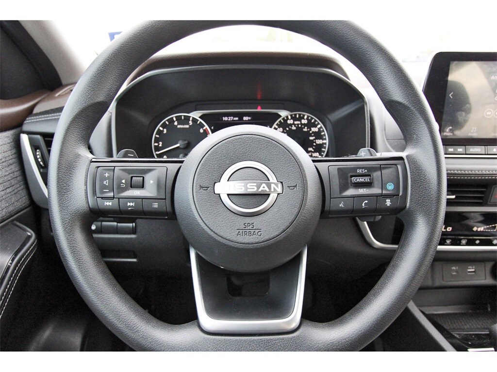 Central Houston Nissan is proud to present you with another True Market Priced Pre-Owned Vehicle. This 2023 Nissan Rogue SV is loaded with the following Factory Options: 18" Aluminum Alloy Wheels, 4-Wheel Disc Brakes, 5.604 Axle Ratio, 6 Speakers, ABS brakes, Air Conditioning, Alloy wheels, AM/FM Radio, AM/FM radio: SiriusXM, Auto High-beam Headlights, Automatic temperature control, Black Splash Guards (Set of 4), Brake assist, Bumpers: body-color, Chrome Rear Bumper Protector, Cloth Seat Trim, Delay-off headlights, Driver door bin, Driver vanity mirror, Dual front impact airbags, Dual front side impact airbags, Electronic Stability Control, Emergency communication system: NissanConnect Services, Floor Mats w/1-Piece Cargo Area Protector, Four wheel independent suspension, Front anti-roll bar, Front Bucket Seats, Front Center Armrest, Front dual zone A/C, Front reading lights, Fully automatic headlights, Heated door mirrors, Illuminated entry, Knee airbag, Low tire pressure warning, NissanConnect featuring Apple CarPlay and Android Auto, Occupant sensing airbag, Outside temperature display, Overhead airbag, Overhead console, Panic alarm, Passenger door bin, Passenger vanity mirror, Power door mirrors, Power driver seat, Power steering, Power windows, Radio data system, Rear anti-roll bar, Rear Parking Sensors, Rear seat center armrest, Rear side impact airbag, Rear window defroster, Rear window wiper, Remote keyless entry, Speed control, Speed-Sensitive Wipers, Split folding rear seat, Spoiler, Steering wheel mounted audio controls, Tachometer, Telescoping steering wheel, Tilt steering wheel, Traction control, Trip computer, and Variably intermittent wipers!!