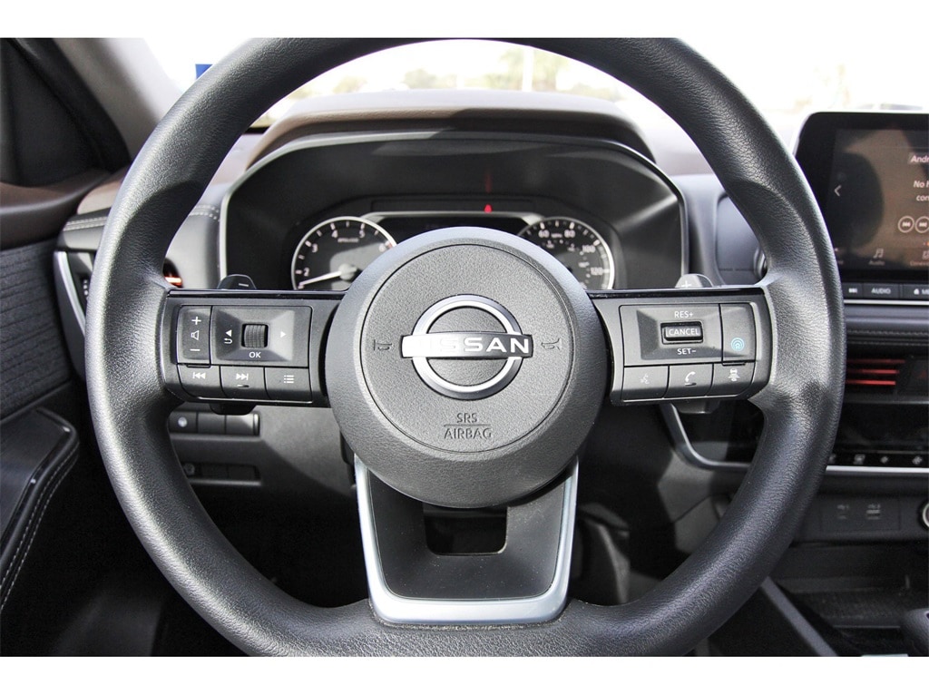 Central Houston Nissan is proud to present you with another True Market Priced Pre-Owned Vehicle. This 2023 Nissan Rogue SV is loaded with the following Factory Options: 18" Aluminum Alloy Wheels, 4-Wheel Disc Brakes, 5.604 Axle Ratio, 6 Speakers, ABS brakes, Air Conditioning, Alloy wheels, AM/FM Radio, AM/FM radio: SiriusXM, Auto High-beam Headlights, Automatic temperature control, Black Splash Guards (Set of 4), Brake assist, Bumpers: body-color, Chrome Rear Bumper Protector, Cloth Seat Trim, Delay-off headlights, Driver door bin, Driver vanity mirror, Dual front impact airbags, Dual front side impact airbags, Electronic Stability Control, Emergency communication system: NissanConnect Services, Floor Mats w/1-Piece Cargo Area Protector, Four wheel independent suspension, Front anti-roll bar, Front Bucket Seats, Front Center Armrest, Front dual zone A/C, Front reading lights, Fully automatic headlights, Heated door mirrors, Illuminated entry, Knee airbag, Low tire pressure warning, NissanConnect featuring Apple CarPlay and Android Auto, Occupant sensing airbag, Outside temperature display, Overhead airbag, Overhead console, Panic alarm, Passenger door bin, Passenger vanity mirror, Power door mirrors, Power driver seat, Power steering, Power windows, Radio data system, Rear anti-roll bar, Rear Parking Sensors, Rear seat center armrest, Rear side impact airbag, Rear window defroster, Rear window wiper, Remote keyless entry, Speed control, Speed-Sensitive Wipers, Split folding rear seat, Spoiler, Steering wheel mounted audio controls, Tachometer, Telescoping steering wheel, Tilt steering wheel, Traction control, Trip computer, USB Charging Cable Set - Nissan, and Variably intermittent wipers!!
