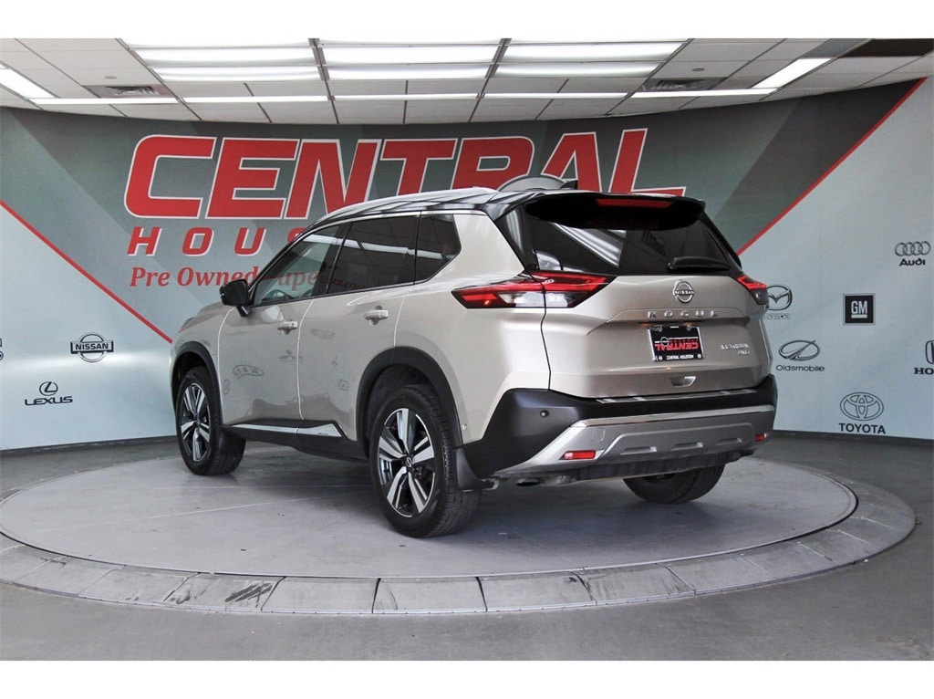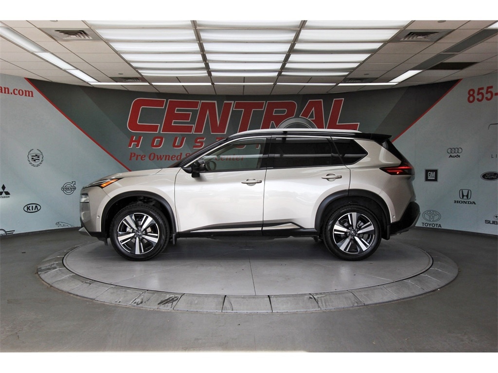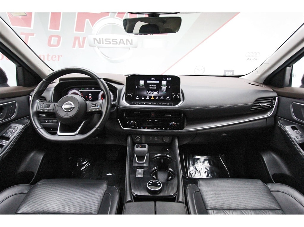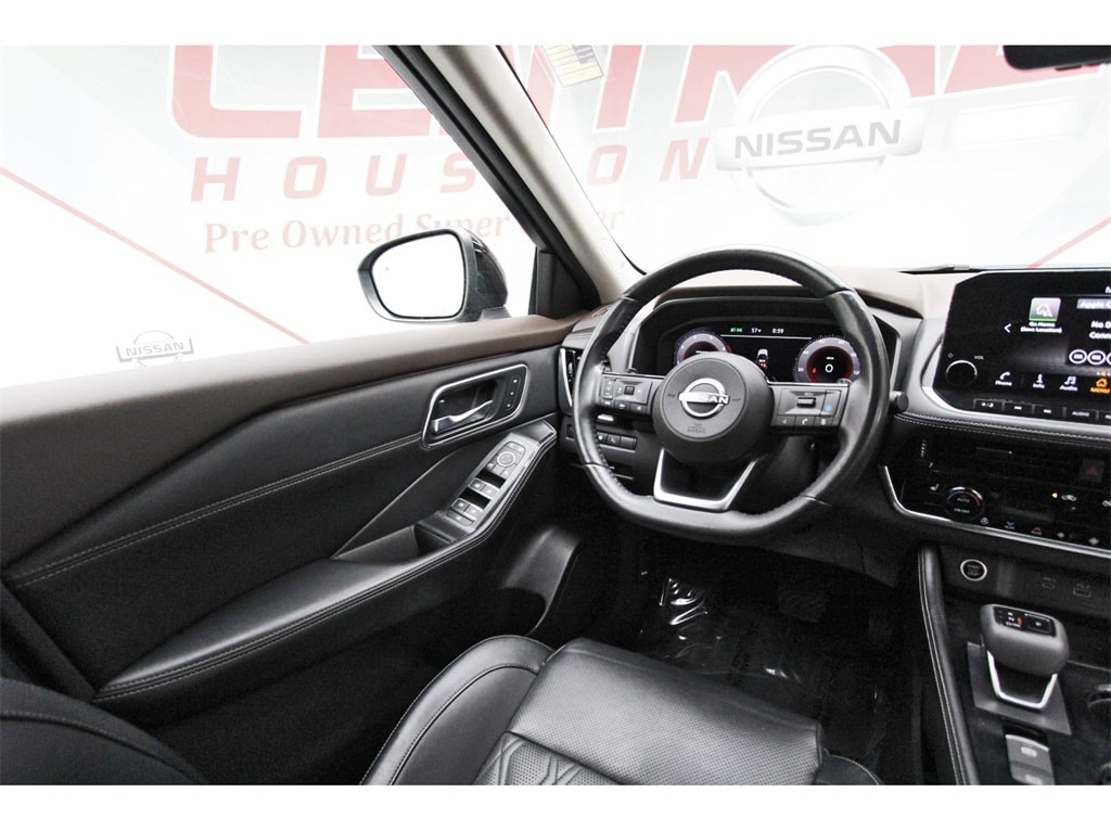 Central Houston Nissan is proud to present you with another True Market Priced Pre-Owned Vehicle. This 2023 Nissan Rogue Platinum is loaded with the following Factory Options: AWD Platinum Premium Package (Heads-Up Display, Rear Heated Seats, and Tri-Zone HVAC), AWD, 10 Speakers, 19" Aluminum Alloy Wheels, 4-Wheel Disc Brakes, 5.604 Axle Ratio, ABS brakes, Air Conditioning, Alloy wheels, AM/FM radio: SiriusXM, Auto High-beam Headlights, Auto-dimming Rear-View mirror, Automatic temperature control, Black Splash Guards (Set of 4), Bose Premium Audio System, Brake assist, Bumpers: body-color, Chrome Rear Bumper Protector, Delay-off headlights, Driver door bin, Driver vanity mirror, Dual front impact airbags, Dual front side impact airbags, Electronic Stability Control, Emergency communication system: NissanConnect Services, First Aid Kit, Floor Mats w/2-Piece Cargo Area Protector, Four wheel independent suspension, Frameless Rearview Mirror w/Universal Remote, Front anti-roll bar, Front Bucket Seats, Front Center Armrest, Front dual zone A/C, Front reading lights, Fully automatic headlights, Heated door mirrors, Heated Front Bucket Seats, Heated front seats, Heated steering wheel, Illuminated entry, Illuminated Kick Plates, Knee airbag, Leather steering wheel, Low tire pressure warning, Memory seat, Navigation system: NissanConnect Navigation, NissanConnect featuring Apple CarPlay and Android Auto, Occupant sensing airbag, Outside temperature display, Overhead airbag, Overhead console, Panic alarm, Passenger door bin, Passenger vanity mirror, Power door mirrors, Power driver seat, Power Liftgate, Power moonroof, Power passenger seat, Power steering, Power windows, Quilted Semi-Aniline Leather Seat Trim, Radio data system, Radio: AM/FM NissanConnect w/Navigation, Rear anti-roll bar, Rear reading lights, Rear seat center armrest, Rear side impact airbag, Rear window defroster, Rear window wiper, Remote keyless entry, Security system, Speed control, Speed-Sensitive Wipers, Split folding rear seat, Spoiler, Steering wheel mounted audio controls, Tachometer, Telescoping steering wheel, Tilt steering wheel, Traction control, Trip computer, Turn signal indicator mirrors, and Variably intermittent wipers!!