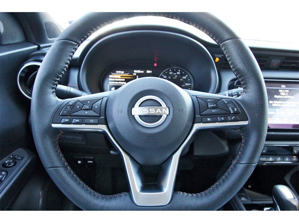 Central Houston Nissan is proud to present you with another True Market Priced Pre-Owned Vehicle. This 2024 Nissan Kicks SR is loaded with the following Factory Options: SR Premium Package (Bose Personal Plus Audio System, Heated Front Seats, Heated Steering Wheel, Prima-Tex Appointed Seat Trim, Security System, and Tonneau Cover), 3.93 Axle Ratio, 4-Wheel Disc Brakes, 6 Speakers, ABS brakes, Air Conditioning, Alloy wheels, AM/FM radio: SiriusXM, Apple CarPlay/Android Auto, Auto High-beam Headlights, Automatic temperature control, Blind Spot Warning, Brake assist, Bumpers: body-color, Carpeted Floor Mats w/Cargo Mat, Cloth Seat Trim, Delay-off headlights, Driver door bin, Driver vanity mirror, Dual front impact airbags, Dual front side impact airbags, Electronic Stability Control, Exterior Parking Camera Rear, Front anti-roll bar, Front Bucket Seats, Front Center Armrest, Front fog lights, Front reading lights, Front wheel independent suspension, Fully automatic headlights, Heated door mirrors, Illuminated entry, Knee airbag, Leather steering wheel, Low tire pressure warning, Occupant sensing airbag, Outside temperature display, Overhead airbag, Panic alarm, Passenger door bin, Passenger vanity mirror, Power door mirrors, Power steering, Power windows, Radio data system, Radio: AM/FM Audio System, Rear Parking Sensors, Rear reading lights, Rear side impact airbag, Rear window defroster, Rear window wiper, Remote keyless entry, Speed control, Splash Guards Grain (4 Piece), Split folding rear seat, Sport steering wheel, SR Rear Roof Spoiler, Steering wheel mounted audio controls, Tachometer, Telescoping steering wheel, Tilt steering wheel, Traction control, Trip computer, Turn signal indicator mirrors, Variably intermittent wipers, Wheels: 17" Alloy (5-Hole), and Wheels: 17" Black Alloy!!