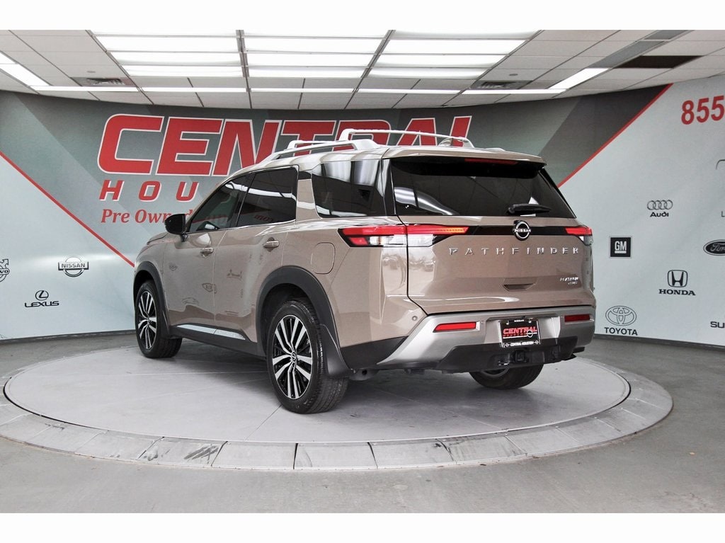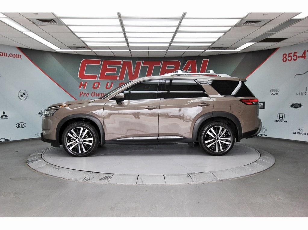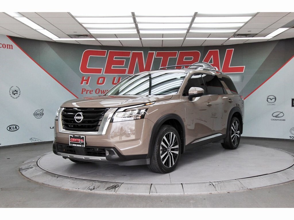 Central Houston Nissan is proud to present you with another True Market Priced Pre-Owned Vehicle. This 2024 Nissan Pathfinder Platinum is loaded with the following Factory Options: 4WD Cargo Package (Cargo Area Protector, Cargo Net, and First Aid Kit), Platinum Captain Chairs Package (2nd-Row Captain Chairs and 2nd-Row Rear Headrest), 4WD, 13 Speakers, 3rd row seats: bench, 4-Wheel Disc Brakes, ABS brakes, Air Conditioning, Alloy wheels, AM/FM radio: SiriusXM, Auto High-beam Headlights, Auto tilt-away steering wheel, Auto-dimming Rear-View mirror, Automatic temperature control, Axle Ratio: 4.334, Black Splash Guards (Set of 4), Bodyside moldings, Bose Premium Audio System, Brake assist, Bumpers: body-color, Captain's Chairs Carpeted Floor Mats (Set of 4), Cross Bars, Delay-off headlights, Driver door bin, Driver vanity mirror, Dual front impact airbags, Dual front side impact airbags, Electronic Stability Control, Emergency communication system, Exterior Parking Camera Rear, Four wheel independent suspension, Front anti-roll bar, Front Bucket Seats, Front Center Armrest, Front dual zone A/C, Front reading lights, Fully automatic headlights, Garage door transmitter: HomeLink, Heads-Up Display, Heated & Cooled Front Bucket Seats, Heated door mirrors, Heated front seats, Heated rear seats, Heated steering wheel, Illuminated entry, Knee airbag, Leather steering wheel, Low tire pressure warning, Memory seat, Navigation system: NissanConnect with Navigation and Services, NissanConnect featuring Apple CarPlay and Android Auto, NissanConnect w/Navigation & Services, Occupant sensing airbag, Outside temperature display, Overhead airbag, Overhead console, Panic alarm, Passenger door bin, Passenger vanity mirror, Power door mirrors, Power driver seat, Power Liftgate, Power moonroof, Power passenger seat, Power steering, Power windows, Radio data system, Radio: AM/FM Audio System, Rain sensing wipers, Rear air conditioning, Rear anti-roll bar, Rear reading lights, Rear seat center armrest, Rear side impact airbag, Rear window defroster, Rear window wiper, Reclining 3rd row seat, Remote keyless entry, Security system, Semi-Aniline Leather-Appointed Seating Surfaces, Speed control, Speed-sensing steering, Speed-Sensitive Wipers, Split folding rear seat, Spoiler, Steering wheel memory, Steering wheel mounted audio controls, Tachometer, Telescoping steering wheel, Tilt steering wheel, Traction control, Trip computer, Turn signal indicator mirrors, Variably intermittent wipers, Ventilated front seats, and Wheels: 20" x 8J Machined Alloy!!