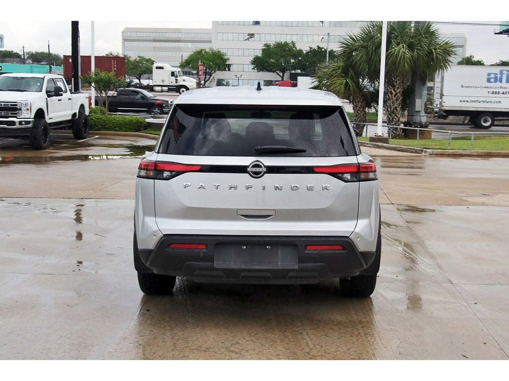 Central Houston Nissan is proud to present you with another True Market Priced Pre-Owned Vehicle. This 2024 Nissan Pathfinder S is loaded with the following Factory Options: 3rd row seats: bench, 4-Wheel Disc Brakes, 6 Speakers, ABS brakes, Air Conditioning, Alloy wheels, AM/FM radio: SiriusXM, Auto High-beam Headlights, Automatic temperature control, Axle Ratio: 4.334, Bench Seat Carpeted Floor Mats (Set of 4), Black Splash Guards (Set of 4), Blind Spot Warning, Brake assist, Bumpers: body-color, Cloth Seating Surfaces, Delay-off headlights, Driver door bin, Driver vanity mirror, Dual front impact airbags, Dual front side impact airbags, Electronic Stability Control, Four wheel independent suspension, Front anti-roll bar, Front Bucket Seats, Front Center Armrest, Front dual zone A/C, Front reading lights, Fully automatic headlights, Illuminated entry, Knee airbag, Low tire pressure warning, Nissan USB Charging Cable Set, NissanConnect featuring Apple CarPlay and Android Auto, Occupant sensing airbag, Outside temperature display, Overhead airbag, Overhead console, Panic alarm, Passenger door bin, Passenger vanity mirror, Power door mirrors, Power steering, Power windows, Radio data system, Radio: AM/FM Audio System, Rear air conditioning, Rear anti-roll bar, Rear Parking Sensors, Rear reading lights, Rear side impact airbag, Rear window defroster, Rear window wiper, Reclining 3rd row seat, Remote keyless entry, Security system, Speed control, Speed-sensing steering, Split folding rear seat, Spoiler, Steering wheel mounted audio controls, Tachometer, Telescoping steering wheel, Tilt steering wheel, Traction control, Trip computer, Variably intermittent wipers, and Wheels: 18" x 8J Painted Alloy!!