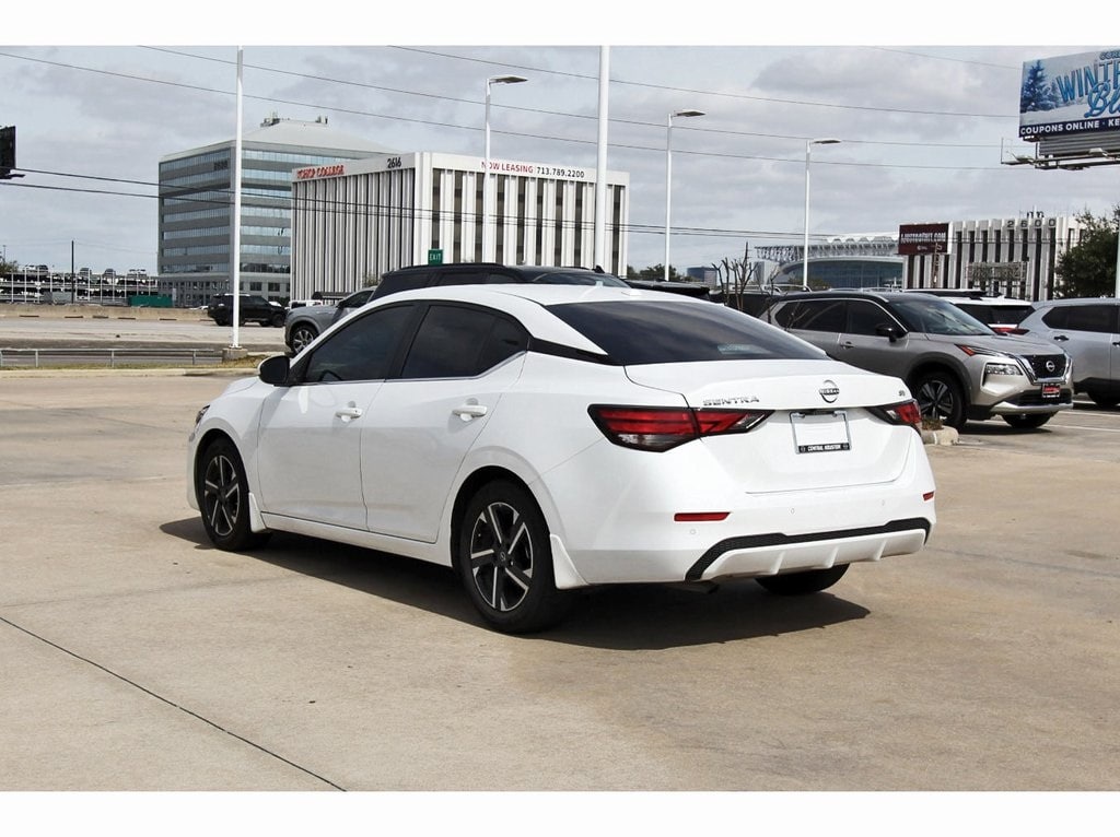 Central Houston Nissan is proud to present you with another True Market Priced Pre-Owned Vehicle. This 2024 Nissan Sentra SV is loaded with the following Factory Options: CVT with Xtronic and Charcoal Cloth CVT with Xtronic, Charcoal Cloth, 16" Alloy Wheels, 4-Wheel Disc Brakes, 6 Speakers, ABS brakes, Air Conditioning, Alloy wheels, AM/FM radio: SiriusXM, Auto High-beam Headlights, Blind Spot Warning, Body Colored Splash Guards (4-Piece), Brake assist, Bumpers: body-color, Carpeted Floor Mats w/Trunk Mat, Clear Rear Bumper Protector, Delay-off headlights, Door Sill Plates, Driver door bin, Driver vanity mirror, Dual front impact airbags, Dual front side impact airbags, Electronic Stability Control, Four wheel independent suspension, Front anti-roll bar, Front Bucket Seats, Front Center Armrest, Front reading lights, Fully automatic headlights, Illuminated entry, Knee airbag, Leather steering wheel, Low tire pressure warning, Nissan USB Charging Cable Set, NissanConnect featuring Apple CarPlay and Android Auto, Occupant sensing airbag, Outside temperature display, Overhead airbag, Overhead console, Panic alarm, Passenger door bin, Passenger vanity mirror, Power door mirrors, Power steering, Power windows, Radio data system, Radio: AM/FM w/RDS/MP3/Aux-In, Rear anti-roll bar, Rear Parking Sensors, Rear side impact airbag, Rear window defroster, Remote keyless entry, Security system, Speed control, Speed-sensing steering, Split folding rear seat, Steering wheel mounted audio controls, Tachometer, Technical Spec Change 2, Telescoping steering wheel, Tilt steering wheel, Traction control, Trip computer, Upgraded Cloth Seat Trim, and Variably intermittent wipers!!