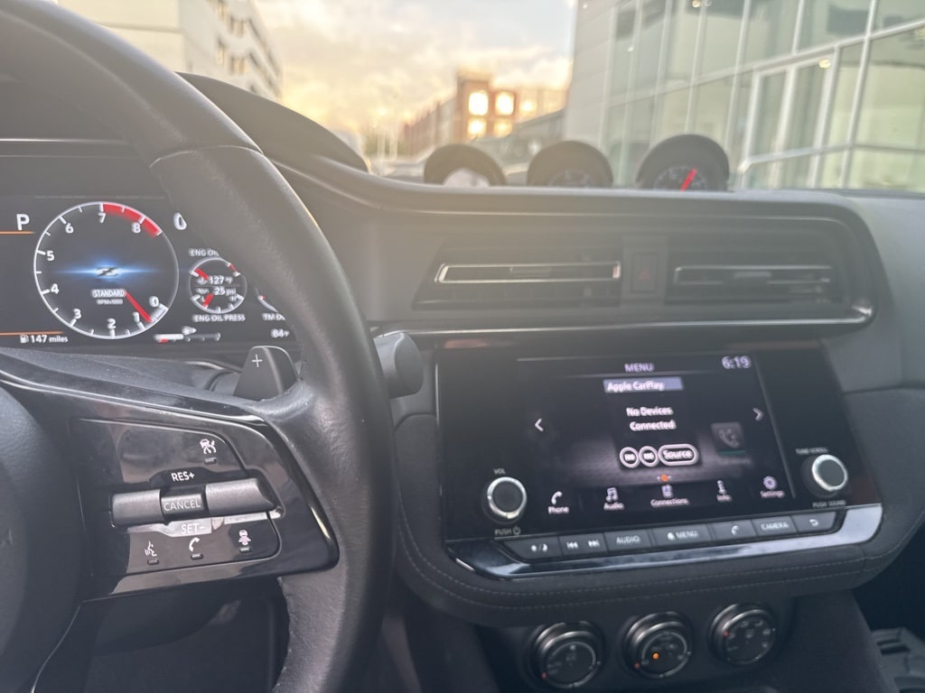 Central Houston Nissan is proud to present you with another True Market Priced Pre-Owned Vehicle. This 2024 Nissan Z Sport is loaded with the following Factory Options: Floor Mat Package, 4-Wheel Disc Brakes, 6 Speakers, ABS brakes, Air Conditioning, Alloy wheels, AM/FM radio: SiriusXM, Anti-whiplash front head restraints, Apple CarPlay/Android Auto, Auto High-beam Headlights, Auto-dimming Rear-View mirror, Automatic temperature control, Blind Spot Warning, Brake assist, Bumpers: body-color, Delay-off headlights, Driver door bin, Driver vanity mirror, Dual front impact airbags, Dual front side impact airbags, Electronic Stability Control, Four wheel independent suspension, Front anti-roll bar, Front Bucket Seats, Front Center Armrest, Front reading lights, Fully automatic headlights, Illuminated Kick Plate - Brushed Metallic, Leather Shift Knob, Leather steering wheel, Low tire pressure warning, Occupant sensing airbag, Outside temperature display, Overhead airbag, Panic alarm, Passenger door bin, Passenger vanity mirror, Power door mirrors, Power steering, Power windows, Radio data system, Radio: Nissan Audio w/6 Speakers, Rear anti-roll bar, Rear window defroster, Remote keyless entry, Security system, Speed control, Speed-sensing steering, Steering wheel mounted audio controls, Tachometer, Telescoping steering wheel, Tilt steering wheel, Traction control, Trip computer, Turn signal indicator mirrors, Variably intermittent wipers, Voltmeter, Wheels: 18" x 9" Styled Alloy, and Woven Cloth Seat Trim!!