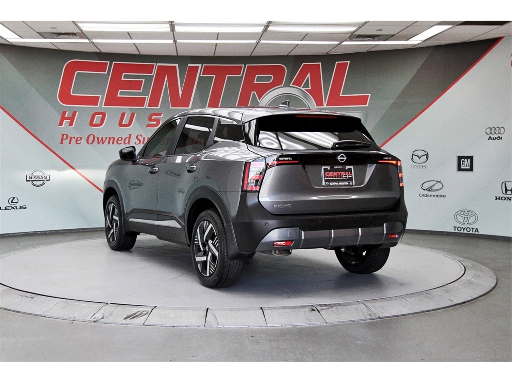 Central Houston Nissan is proud to present you with another True Market Priced Pre-Owned Vehicle. This 2025 Nissan Kicks SV is loaded with the following Factory Options: Charging Package (USB Charging Cable Set - Nissan and USB-C Power Delivery), 4 Speakers, 4-Wheel Disc Brakes, ABS brakes, Air Conditioning, AM/FM radio: Sirius, Auto High-beam Headlights, Blind Spot Warning, Brake assist, Bumpers: body-color, Carpeted Floor Mats & Underfloor Protector, Cloth Seat Trim, Driver door bin, Driver vanity mirror, Dual front impact airbags, Dual front side impact airbags, Electronic Stability Control, Front anti-roll bar, Front Bucket Seats, Front Center Armrest, Front reading lights, Front wheel independent suspension, Fully automatic headlights, Illuminated entry, Knee airbag, Low tire pressure warning, Occupant sensing airbag, Outside temperature display, Overhead airbag, Panic alarm, Passenger door bin, Passenger vanity mirror, Power door mirrors, Power steering, Power windows, Radio data system, Radio: AM/FM Audio System, Rear anti-roll bar, Rear Parking Sensors, Rear reading lights, Rear side impact airbag, Rear window defroster, Rear window wiper, Remote keyless entry, Security system, Speed control, Speed-sensing steering, Splash Guards, Split folding rear seat, Spoiler, Sport steering wheel, Steering wheel mounted audio controls, Tachometer, Telescoping steering wheel, Tilt steering wheel, Traction control, Trip computer, Variably intermittent wipers, Wheels: 17" Steel Flex w/Full Covers, and Wireless Apple CarPlay/Wireless Android Auto!!
