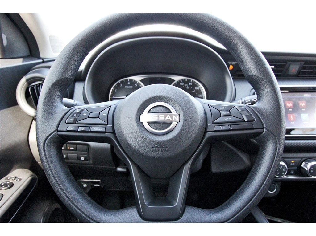 Central Houston Nissan is proud to present you with another True Market Priced Pre-Owned Vehicle. This 2025 Nissan Kicks Play S is loaded with the following Factory Options: 16" Steel Wheels w/Full Covers, 6 Speakers, ABS brakes, Air Conditioning, AM/FM radio, Apple CarPlay/Android Auto, Auto High-beam Headlights, Blind Spot Warning, Brake assist, Bumpers: body-color, Cloth Seat Trim w/Single Stitch, Driver door bin, Driver vanity mirror, Driver's Seat Mounted Armrest, Dual front impact airbags, Dual front side impact airbags, Electronic Stability Control, Front anti-roll bar, Front Bucket Seats, Front reading lights, Front wheel independent suspension, Fully automatic headlights, Illuminated entry, Knee airbag, Low tire pressure warning, Occupant sensing airbag, Outside temperature display, Overhead airbag, Panic alarm, Passenger door bin, Passenger vanity mirror, Power door mirrors, Power steering, Power windows, Radio data system, Radio: AM/FM Audio System, Rear Parking Sensors, Rear reading lights, Rear side impact airbag, Rear window defroster, Rear window wiper, Remote keyless entry, Speed control, Split folding rear seat, Sport steering wheel, Steering wheel mounted audio controls, Tachometer, Telescoping steering wheel, Tilt steering wheel, Traction control, Trip computer, and Variably intermittent wipers!!