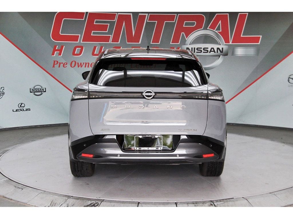 Central Houston Nissan is proud to present you with another True Market Priced Pre-Owned Vehicle. This 2025 Nissan Murano Platinum is loaded with the following Factory Options: 9-Speed Automatic and AWD Cargo Package (3-Position Cargo Area Protector, Cargo Net, First Aid Kit, and Retractable Cargo Cover), 9-Speed Automatic, AWD, 10 Speakers, 2-Tone w/Premium Paint, 21" Alloy Wheels, 4-Wheel Disc Brakes, ABS brakes, Air Conditioning, Alloy wheels, AM/FM radio: SiriusXM w/360L, Auto High-beam Headlights, Auto tilt-away steering wheel, Auto-dimming Rear-View mirror, Automatic temperature control, Brake assist, Bumpers: body-color, Carpeted Floor & Cargo Mats, Child-Seat-Sensing Airbag, Compass, Delay-off headlights, Driver door bin, Driver vanity mirror, Dual front impact airbags, Dual front side impact airbags, Electronic Stability Control, Emergency communication system: NissanConnect Services, Four wheel independent suspension, Front anti-roll bar, Front Bucket Seats, Front Center Armrest, Front dual zone A/C, Front reading lights, Fully automatic headlights, Garage door transmitter: HomeLink, Heads-Up Display, Heated & Ventilated Front Bucket Seats w/Massage, Heated door mirrors, Heated front seats, Heated rear seats, Heated steering wheel, Illuminated entry, Knee airbag, Low tire pressure warning, Memory seat, Navigation system: NissanConnect with Navigation and Services, Occupant sensing airbag, Outside temperature display, Overhead airbag, Overhead console, Painted Splash Guards, Panic alarm, Passenger door bin, Passenger vanity mirror, Power door mirrors, Power driver seat, Power Liftgate, Power moonroof: Panoramic, Power passenger seat, Power steering, Power windows, Quilted Semi-Aniline Leather-Appointed Seat Trim, Radio data system, Radio: NissanConnect w/Hybrid Radio, Rain sensing wipers, Rear anti-roll bar, Rear reading lights, Rear seat center armrest, Rear side impact airbag, Rear window defroster, Rear window wiper, Remote keyless entry, Security system, Speed control, Speed-Sensitive Wipers, Split folding rear seat, Spoiler, Steering wheel memory, Steering wheel mounted audio controls, Tachometer, Telescoping steering wheel, Tilt steering wheel, Traction control, Trip computer, Turn signal indicator mirrors, USB Charging Cables, Variably intermittent wipers, Ventilated front seats, and Wireless Apple CarPlay/Wireless Android Auto!!