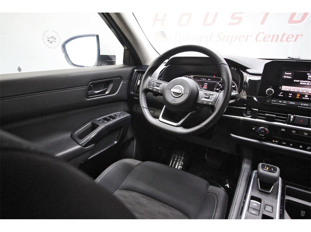 Central Houston Nissan is proud to present you with another True Market Priced Pre-Owned Vehicle. This 2025 Nissan Pathfinder SV is loaded with the following Factory Options: 3rd row seats: bench, 4-Wheel Disc Brakes, 6 Speakers, ABS brakes, Air Conditioning, Alloy wheels, AM/FM radio: SiriusXM, Auto High-beam Headlights, Automatic temperature control, Bench Seat Carpeted Floor Mats (set of 4), Black Splash Guards (set of 4), Brake assist, Bumpers: body-color, Cloth Seating Surfaces, Cross Bars, Delay-off headlights, Driver door bin, Driver vanity mirror, Dual front impact airbags, Dual front side impact airbags, Electronic Stability Control, Emergency communication system, Four wheel independent suspension, Front anti-roll bar, Front Bucket Seats, Front Center Armrest, Front dual zone A/C, Front reading lights, Fully automatic headlights, Heated door mirrors, Heated Front Bucket Seats, Heated front seats, Illuminated entry, Knee airbag, Leather steering wheel, Low tire pressure warning, Nissan USB Charging Cable Set, NissanConnect featuring Apple CarPlay and Android Auto, Occupant sensing airbag, Outside temperature display, Overhead airbag, Overhead console, Panic alarm, Passenger door bin, Passenger vanity mirror, Power door mirrors, Power driver seat, Power Liftgate, Power steering, Power windows, Premium Paint, Radio data system, Radio: AM/FM Audio System with NissanConnect, Rear air conditioning, Rear anti-roll bar, Rear Parking Sensors, Rear reading lights, Rear seat center armrest, Rear side impact airbag, Rear window defroster, Rear window wiper, Reclining 3rd row seat, Remote keyless entry, Security system, Speed control, Speed-sensing steering, Split folding rear seat, Spoiler, Steering wheel mounted audio controls, Tachometer, Telescoping steering wheel, Tilt steering wheel, Traction control, Trip computer, Turn signal indicator mirrors, Variably intermittent wipers, and Wheels: 18" x 8J Painted Alloy!!