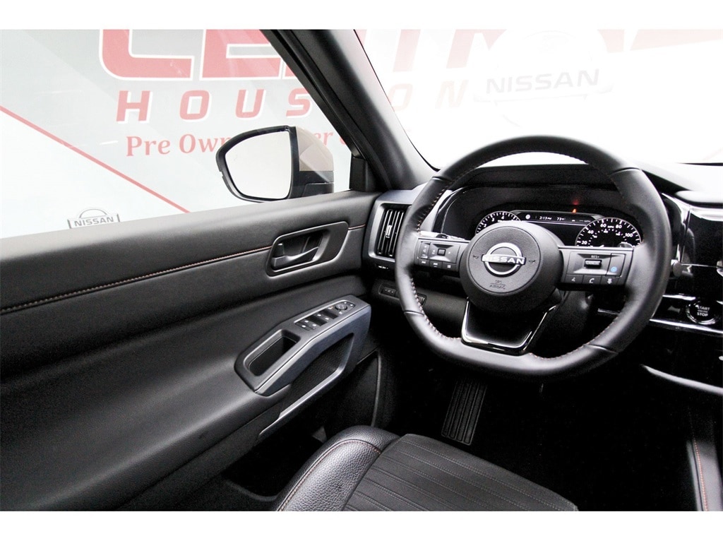 Central Houston Nissan is proud to present you with another True Market Priced Pre-Owned Vehicle. This 2025 Nissan Pathfinder Rock Creek is loaded with the following Factory Options: 4WD 4WD, 3rd row seats: bench, 4-Wheel Disc Brakes, 6 Speakers, ABS brakes, Air Conditioning, Alloy wheels, AM/FM radio: SiriusXM, Auto High-beam Headlights, Automatic temperature control, Black Splash Guards (Set of 4), Brake assist, Delay-off headlights, Driver door bin, Driver vanity mirror, Dual front impact airbags, Dual front side impact airbags, Electronic Stability Control, Emergency communication system, Four wheel independent suspension, Front anti-roll bar, Front Bucket Seats, Front Center Armrest, Front dual zone A/C, Front fog lights, Front reading lights, Fully automatic headlights, Heated door mirrors, Heated Front Bucket Seats, Heated front seats, Illuminated entry, Knee airbag, Leather steering wheel, Leatherette-Appointed Seating Surfaces, Low tire pressure warning, NissanConnect featuring Apple CarPlay and Android Auto, Occupant sensing airbag, Outside temperature display, Overhead airbag, Overhead console, Panic alarm, Passenger door bin, Passenger vanity mirror, Power door mirrors, Power driver seat, Power Liftgate, Power steering, Power windows, Radio data system, Radio: AM/FM Audio System w/NissanConnect, Rear air conditioning, Rear anti-roll bar, Rear Parking Sensors, Rear reading lights, Rear side impact airbag, Rear window defroster, Rear window wiper, Reclining 3rd row seat, Remote keyless entry, Rock Creek AS Floor Liners & Cargo Area Protector, Rock Creek Roof Rack, Roof rack, Security system, Speed control, Speed-sensing steering, Split folding rear seat, Spoiler, Steering wheel mounted audio controls, Tachometer, Telescoping steering wheel, Tilt steering wheel, Traction control, Trip computer, Turn signal indicator mirrors, Variably intermittent wipers, and Wheels: 18" x 8J Machined Alloy w/Black Finish!!