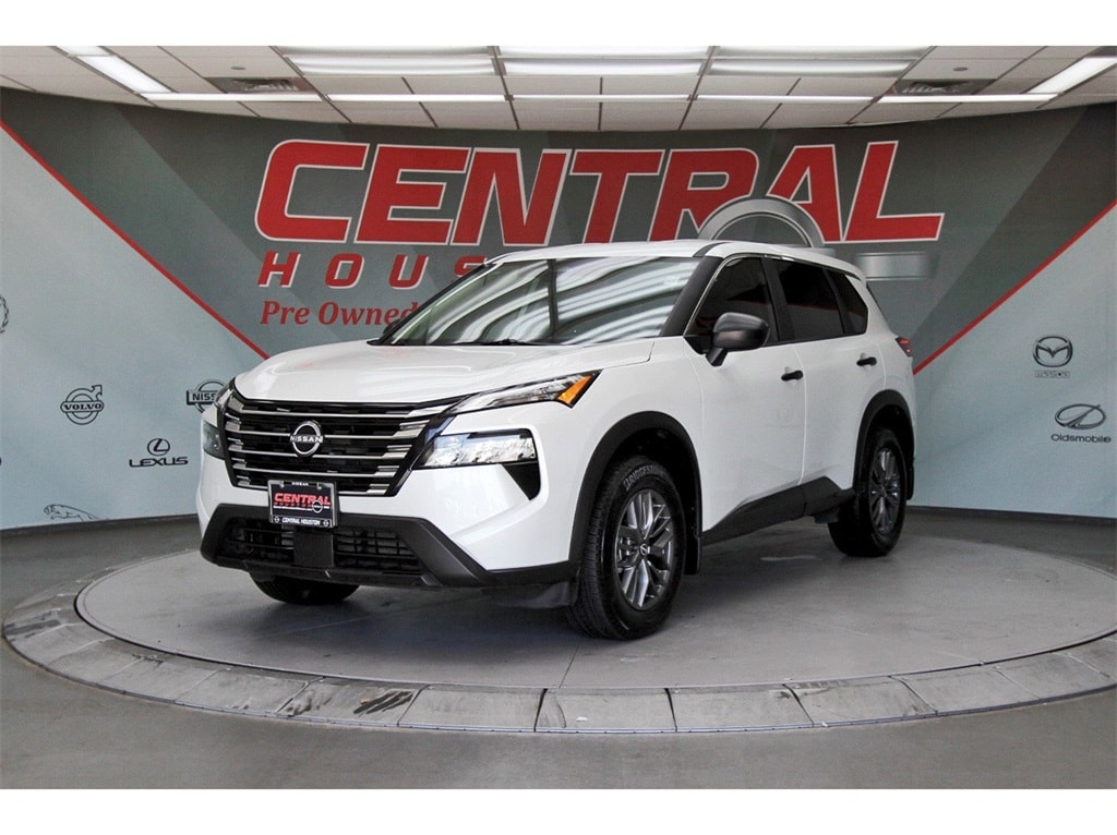Central Houston Nissan is proud to present you with another True Market Priced Pre-Owned Vehicle. This 2025 Nissan Rogue S is loaded with the following Factory Options: 17" Aluminum Alloy Wheels, 4 Speakers, 4-Wheel Disc Brakes, ABS brakes, Air Conditioning, Alloy wheels, AM/FM radio: SiriusXM, Apple CarPlay/Android Auto, Auto High-beam Headlights, Black Splash Guards (Set of 4), Blind Spot Warning, Brake assist, Bumpers: body-color, Cloth Seat Trim, Delay-off headlights, Driver door bin, Driver vanity mirror, Dual front impact airbags, Dual front side impact airbags, Electronic Stability Control, First Aid Kit, Floor Mats w/1-Piece Cargo Area Protector, Four wheel independent suspension, Front anti-roll bar, Front Bucket Seats, Front Center Armrest, Front reading lights, Fully automatic headlights, Illuminated entry, Knee airbag, Low tire pressure warning, Occupant sensing airbag, Outside temperature display, Overhead airbag, Overhead console, Panic alarm, Passenger door bin, Passenger vanity mirror, Power door mirrors, Power steering, Power windows, Premium Paint, Radio data system, Radio: AM/FM NissanConnect, Rear anti-roll bar, Rear seat center armrest, Rear side impact airbag, Rear window defroster, Rear window wiper, Remote keyless entry, Speed control, Speed-sensing steering, Speed-Sensitive Wipers, Split folding rear seat, Spoiler, Steering wheel mounted audio controls, Tachometer, Telescoping steering wheel, Tilt steering wheel, Traction control, Trip computer, and Variably intermittent wipers!!