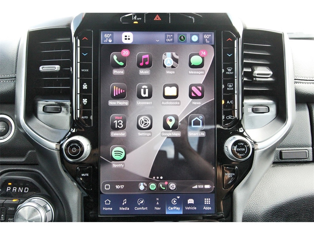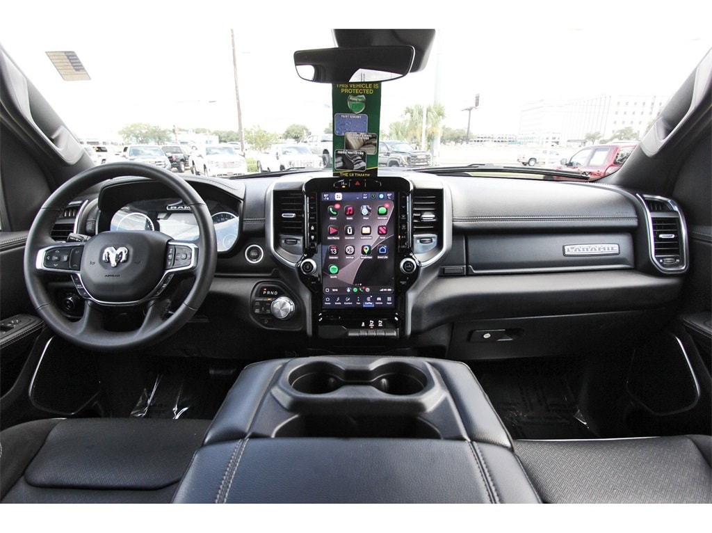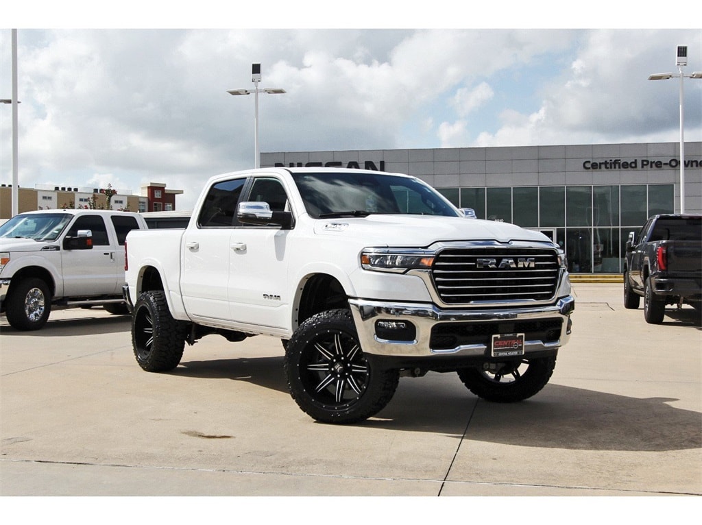 Central Houston Nissan is proud to present you with another True Market Priced Pre-Owned Vehicle. This 2025 Ram 1500 Laramie is loaded with the following Factory Options: Quick Order Package 21H Laramie, 10 Speakers, 3 Rear Seat Head Restraints, 3.55 Rear Axle Ratio, 4 Way Front Headrests, 4-Wheel Disc Brakes, 4G LTE Wi-Fi Hot Spot, ABS brakes, Air Conditioning, Alloy wheels, AM/FM radio: SiriusXM with 360L, Apple CarPlay, Apple CarPlay/Android Auto, Audio memory, Auto High-beam Headlights, Auto Power-Folding Mirrors, Auto-dimming door mirrors, Auto-Dimming Exterior Driver Mirror, Auto-dimming Rear-View mirror, Automatic temperature control, Brake assist, Bumpers: chrome, Chrome Exterior Mirrors, Compass, Connected Travel & Traffic Services, Connectivity - US/Canada, Convex Wide-Angle Exterior Mirror Insert, Delay-off headlights, Driver door bin, Driver Seat Memory, Driver vanity mirror, Dual front impact airbags, Dual front side impact airbags, Electronic Stability Control, Exterior Mirrors Courtesy Lamps, Exterior Mirrors w/Heating Element, Exterior Mirrors w/Memory, Exterior Mirrors w/Supplemental Signals, Front anti-roll bar, Front Center Armrest w/Storage, Front dual zone A/C, Front fog lights, Front License Plate Bracket, Front reading lights, Front Seat Back Map Pockets, Front wheel independent suspension, Fully automatic headlights, Garage door transmitter, Google Android Auto, GPS Antenna Input, GPS Navigation, HD Radio, Heated door mirrors, Heated Front Seats, Heated front seats, Heated rear seats, Heated Steering Wheel, Heated steering wheel, Illuminated entry, Integrated Voice Command w/Bluetooth, Leather steering wheel, Leather Trim 40/20/40 Bench Seat, Low tire pressure warning, Manufacturer's Statement of Origin, Memory seat, Navigation System, Occupant sensing airbag, Outside temperature display, Overhead airbag, Overhead console, Panic alarm, ParkView Rear Back-Up Camera, Passenger door bin, Passenger vanity mirror, Power 2-Way Driver Lumbar Adjust, Power 2-Way Passenger Lumbar Adjust, Power Adjust 8-Way Front Passenger Seat, Power door mirrors, Power driver seat, Power passenger seat, Power steering, Power windows, Radio data system, Radio: Uconnect 5 Nav w/12.0" Display, RAM Grille Badge - Chrome, Rear anti-roll bar, Rear reading lights, Rear seat center armrest, Rear step bumper, Remote keyless entry, Security system, SiriusXM w/360L, Speed control, Split folding rear seat, Steering wheel mounted audio controls, Tachometer, Telescoping steering wheel, Tilt steering wheel, Traction control, Trip computer, Turn signal indicator mirrors, USB Host Flip, Variably intermittent wipers, Ventilated Front Seats, Ventilated front seats, Voltmeter, and Wheels: 20" x 9" Premium Paint/Polish!!