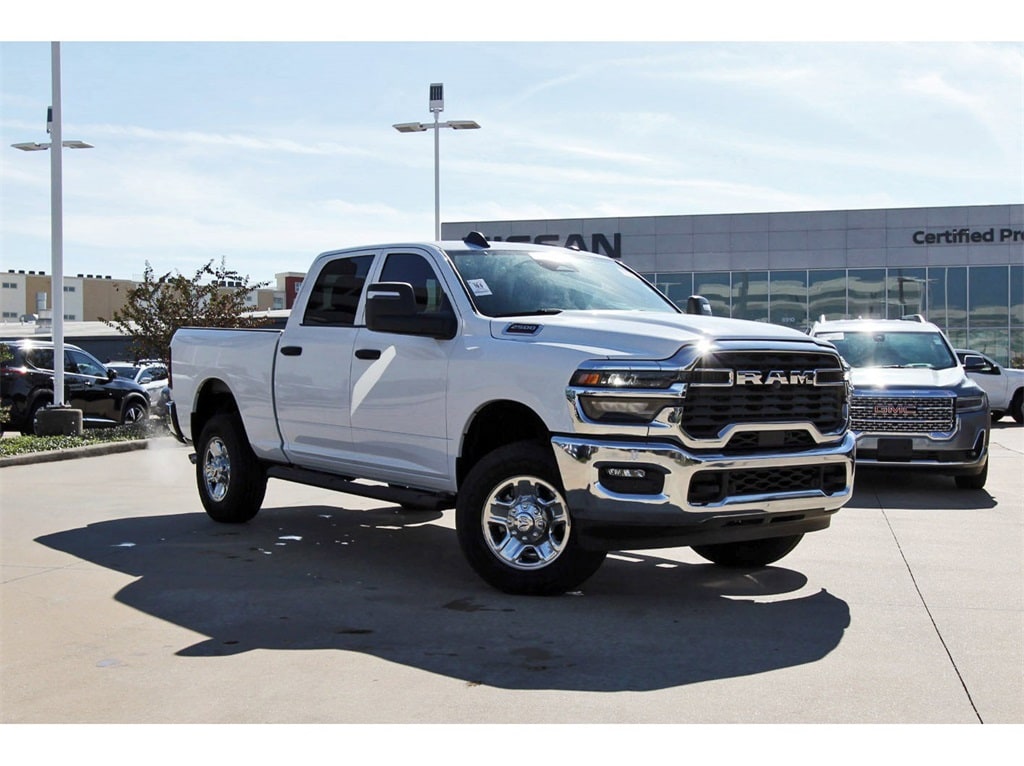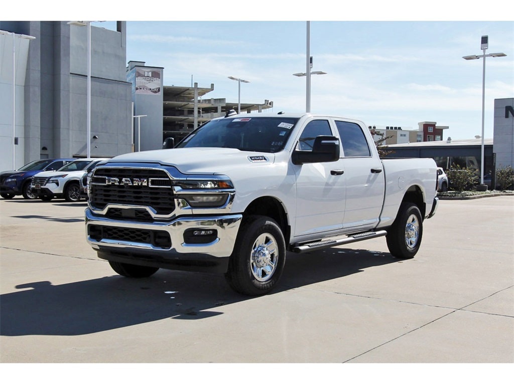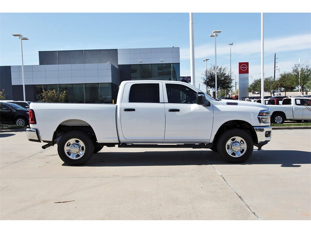 Central Houston Nissan is proud to present you with another True Market Priced Pre-Owned Vehicle. This 2025 Ram 2500 Tradesman is loaded with the following Factory Options: Quick Order Package 2UA Tradesman, Tradesman Level 2 Equipment Group (115V Auxiliary Front Power Outlet, 12" Touchscreen Display, 2 Way Rear Headrest Seat, 4 Way Front Headrests, 40/20/40 Split Bench Seat, 400W Inverter, 4G LTE Wi-Fi Hot Spot, Air Conditioning ATC w/Dual Zone Control, Alexa Built-In, Anti-Spin Differential Rear Axle, Apple CarPlay, Auto-Dimming Rear-View Mirror, Black Exterior Mirrors, Bright Front Bumper, Bright Rear Bumper, Carpet Floor Covering, Center Hub, Chrome Grille Surround, Cloth 40/20/40 Bench Seat, Connected Travel & Traffic Services, Connectivity - US/Canada, Disassociated Touchscreen Display, Emergency Vehicle Alert System (EVAS), Exterior 115V AC Outlet, Exterior Mirrors Courtesy Lamps, Exterior Mirrors w/Heating Element, Exterior Mirrors w/Supplemental Signals, Front & Rear Floor Mats, Front Armrest w/Cupholders, Global Telematics Box Module (TBM), Google Android Auto, GPS Antenna Input, GPS Navigation, HD Radio, Integrated Voice Command w/Bluetooth, Manual Adjust 4-Way Driver Seat, Manual Adjust 4-Way Front Passenger Seat, Manual Folding Exterior Mirrors, Manual Telescoping Mirrors, Matte Black Mesh Grille w/Chrome, Mirror Running Lights, Mopar Black Tubular Side Steps, Off-Road Info Pages, ParkSense Front/Rear Park Assist System, Power Adjust Mirrors, Power Adjustable Convex Aux Mirrors, Power Heated Folding Telescope Mirrors, Radio: Uconnect 5 Nav w/12.0" Display, Rear Folding Seat, Rear Power Sliding Window, Remote USB Port - Charge Only, Selectable Tire Fill Alert, SiriusXM Radio Service, SiriusXM w/360L, Storage Tray, Tinted Acoustic Windshield Glass, Trailer Tow Pages, and Wheels: 18" x 8.0" Steel Chrome Clad), 3.73 Axle Ratio, 4-Wheel Disc Brakes, 6 Speakers, ABS brakes, Air Conditioning, AM/FM radio: SiriusXM, Apple CarPlay/Android Auto, Black Wheel Center Hub, Brake assist, Compass, Dash Pass Thru Wire Circuits, Delay-off headlights, Driver door bin, Dual front impact airbags, Dual front side impact airbags, Electronic Stability Control, Front anti-roll bar, Front Center Armrest w/Storage, Front fog lights, Front reading lights, Fully automatic headlights, Heavy Duty Vinyl 40/20/40 Split Bench Seat, I/P Mounted Auxiliary Switches, Illuminated entry, Low tire pressure warning, Manufacturer's Statement of Origin, Occupant sensing airbag, Outside temperature display, Overhead airbag, Overhead console, Panic alarm, ParkView Rear Back-Up Camera, Passenger door bin, Passenger vanity mirror, Power steering, Power windows, Radio data system, Radio: Uconnect 5 w/8.4" Display, Rear anti-roll bar, Rear step bumper, Rear window defroster, Remote keyless entry, Speed control, Tachometer, Tilt steering wheel, Traction control, Variably intermittent wipers, Voltmeter, and Wheels: 17" x 7.5" Black Steel Styled!!
