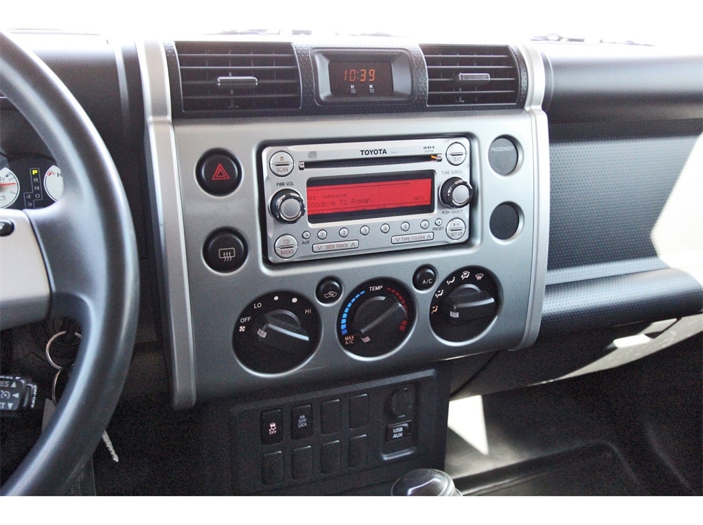 Central Houston Nissan is proud to present you with another True Market Priced Pre-Owned Vehicle. This 2011 Toyota FJ Cruiser is loaded with the following Factory Options: 4WD Convenience Package, 4WD, 17" Aluminum Alloy Wheels, 17" x 7.5" Steel Wheels, 3.73 Axle Ratio, 4-Wheel Disc Brakes, 6 Speakers, ABS brakes, Air Conditioning, AM/FM radio: XM, AM/FM/CD Audio System w/6-Speakers, Anti-whiplash front head restraints, Auto-Dimming Rear-View Mirror w/Backup Camera, Brake assist, CD player, Cruise Control, Daytime Running Lights, Driver door bin, Driver vanity mirror, Driver's Seat Mounted Armrest, Dual front impact airbags, Dual front side impact airbags, Electronic Stability Control, Fabric Seat Trim, Front anti-roll bar, Front Bucket Seats, Front reading lights, Front wheel independent suspension, Illuminated entry, Locking Rear Differential, Low tire pressure warning, Occupant sensing airbag, Overhead airbag, Passenger door bin, Passenger vanity mirror, Power Aluminum Outside Rear-View Mirror, Power steering, Power windows, Rear anti-roll bar, Rear Privacy Glass, Rear window defroster, Rear Window Wiper, Remote Keyless Entry System, Speed-sensing steering, Split folding rear seat, Steering wheel mounted audio controls, Tachometer, Tilt steering wheel, Traction control, Variably intermittent wipers, and Voltmeter!!