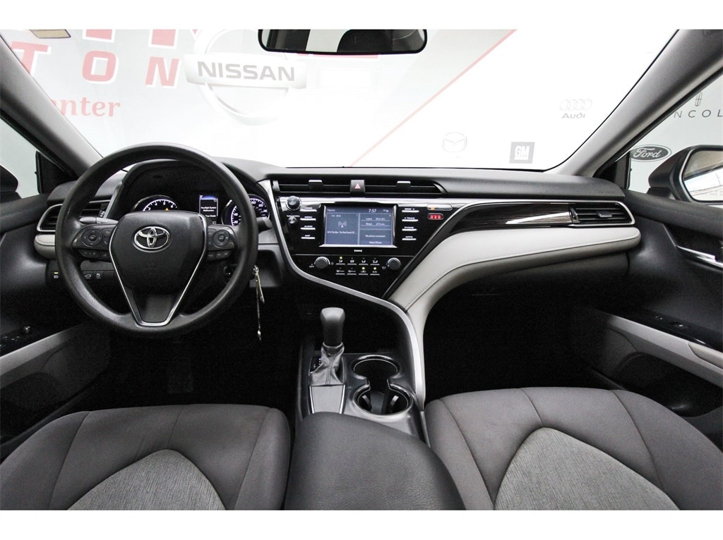 Central Houston Nissan is proud to present you with another True Market Priced Pre-Owned Vehicle. This 2020 Toyota Camry LE is loaded with the following Factory Options: Black Cloth Black Cloth, 4-Wheel Disc Brakes, 6 Speakers, 7.5J x 17" Alloy Wheels, ABS brakes, Air Conditioning, Alloy wheels, AM/FM radio: SiriusXM, Apple CarPlay/Android Auto, Auto High-beam Headlights, Brake assist, Bumpers: body-color, Delay-off headlights, Driver door bin, Driver vanity mirror, Dual front impact airbags, Dual front side impact airbags, Electronic Stability Control, Emergency communication system: Safety Connect with 1-year trial, Exterior Parking Camera Rear, Fabric Seat Trim, Four wheel independent suspension, Front anti-roll bar, Front Bucket Seats, Front Center Armrest, Front reading lights, Fully automatic headlights, Illuminated entry, Knee airbag, Low tire pressure warning, Occupant sensing airbag, Outside temperature display, Overhead airbag, Overhead console, Panic alarm, Passenger door bin, Passenger vanity mirror, Power door mirrors, Power driver seat, Power steering, Power windows, Radio data system, Radio: AM/FM Audio System, Rear anti-roll bar, Rear reading lights, Rear seat center armrest, Rear side impact airbag, Rear window defroster, Remote keyless entry, Security system, Speed control, Speed-sensing steering, Split folding rear seat, Steering wheel mounted audio controls, Tachometer, Telescoping steering wheel, Tilt steering wheel, Traction control, Trip computer, and Variably intermittent wipers!!