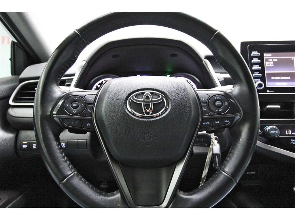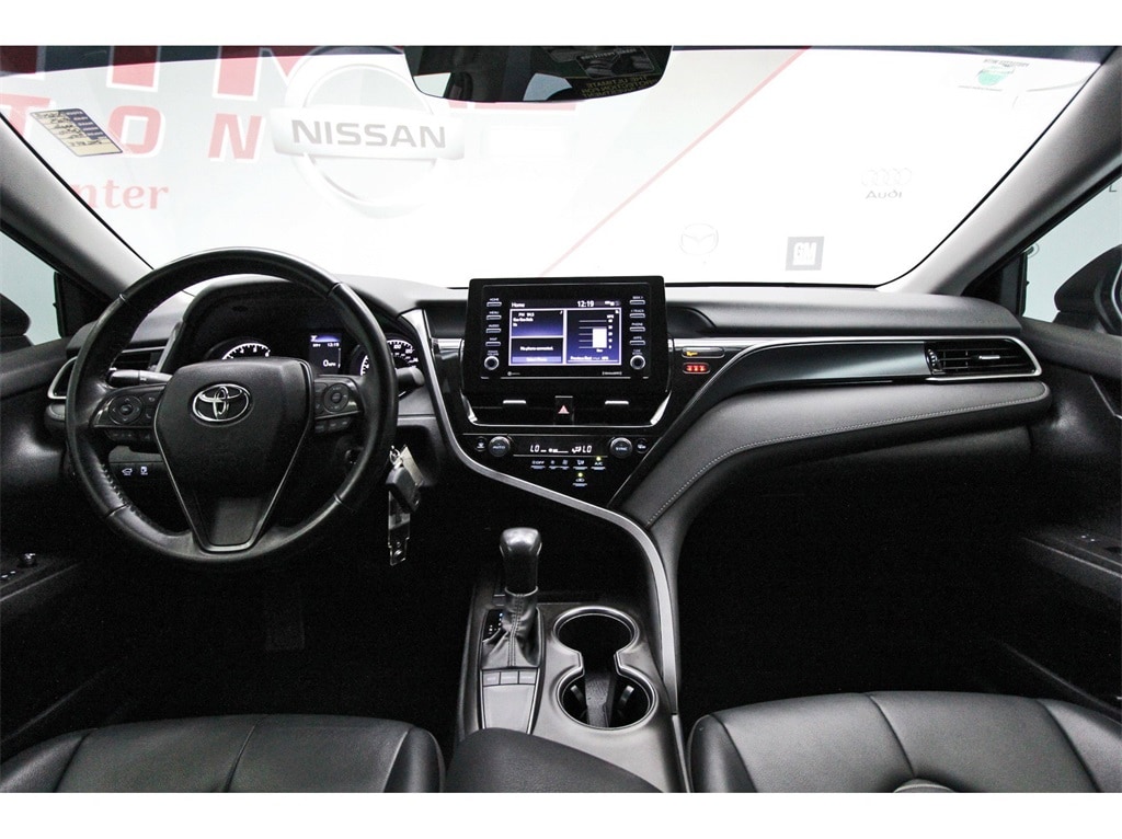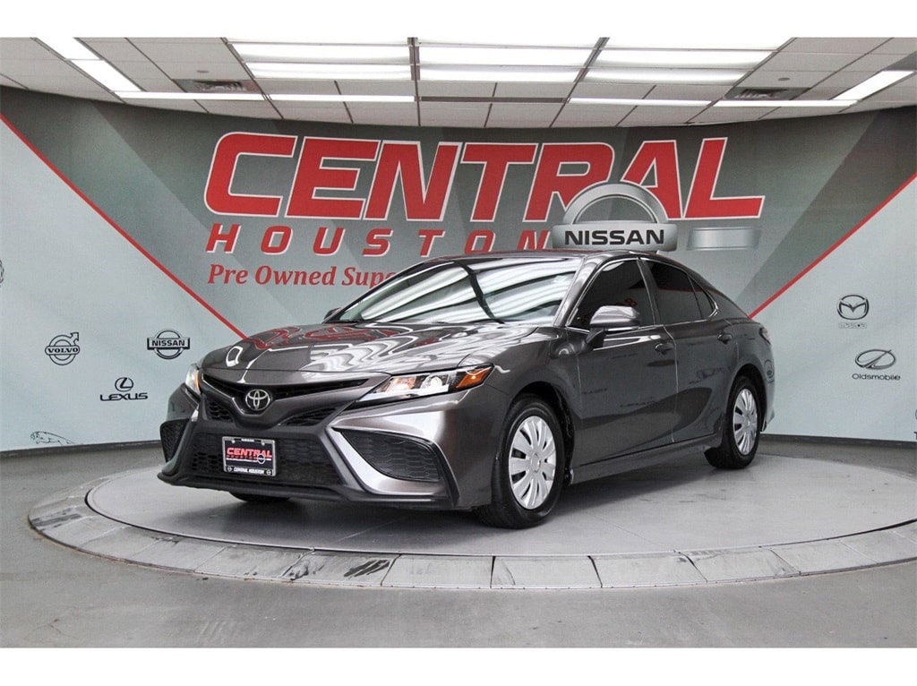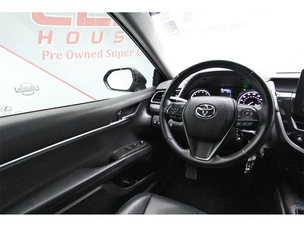 Central Houston Nissan is proud to present you with another True Market Priced Pre-Owned Vehicle. This 2023 Toyota Camry SE is loaded with the following Factory Options: Black Artificial Leather Black Artificial Leather, 4-Wheel Disc Brakes, 6 Speakers, 8.0J x 18" Alloy Wheels, ABS brakes, Air Conditioning, Alloy wheels, AM/FM radio: SiriusXM, Apple CarPlay/Android Auto, Auto High-beam Headlights, Automatic temperature control, Brake assist, Bumpers: body-color, Carpet/Trunk Mat Set (TMS), Delay-off headlights, Driver door bin, Driver vanity mirror, Dual front impact airbags, Dual front side impact airbags, Electronic Stability Control, Emergency communication system: Safety Connect (1-year trial), Exterior Parking Camera Rear, Four wheel independent suspension, Front anti-roll bar, Front Bucket Seats, Front Center Armrest, Front dual zone A/C, Front reading lights, Fully automatic headlights, Heated door mirrors, Illuminated entry, Knee airbag, Leather steering wheel, Low tire pressure warning, Occupant sensing airbag, Outside temperature display, Overhead airbag, Overhead console, Panic alarm, Passenger door bin, Passenger vanity mirror, Power door mirrors, Power driver seat, Power steering, Power windows, Radio data system, Radio: Audio, Rear anti-roll bar, Rear seat center armrest, Rear side impact airbag, Rear window defroster, Remote keyless entry, Security system, Speed control, Speed-sensing steering, Split folding rear seat, Spoiler, Sport SofTex Seat Trim w/Fabric Inserts, Steering wheel mounted audio controls, Tachometer, Telescoping steering wheel, Tilt steering wheel, Traction control, Trip computer, Turn signal indicator mirrors, and Variably intermittent wipers!!